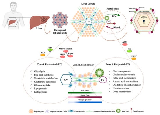 - Cunningham, R.P.; Porat-Shliom, N. Liver Zonation—Revisiting Old Questions with New Technologies. Front. Physiol. 2021, 12, 732929. [Google Scholar] [CrossRef]
