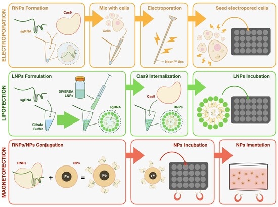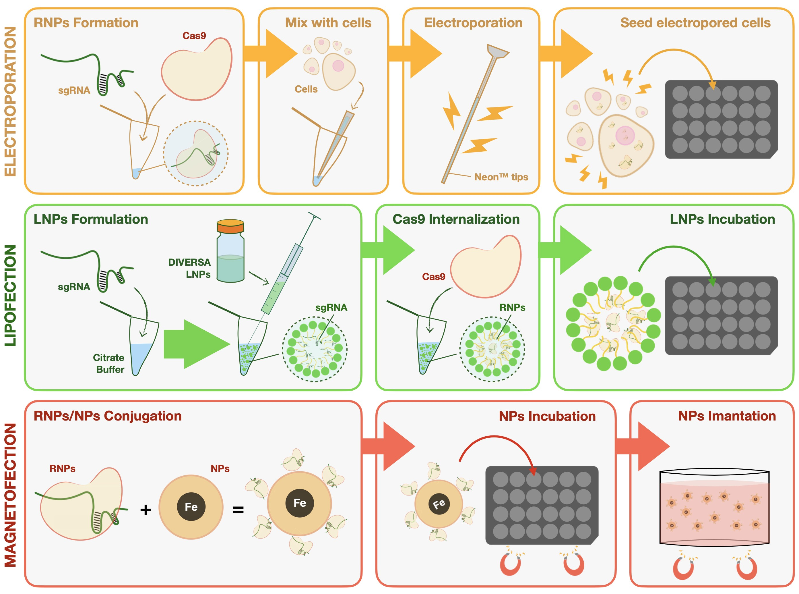 Supplementary Figure S4) were obtained for Cas9 labeled with a cyanine dye (see the Methods and Materials section) under the experimental conditions of two of the delivery strategies, electroporation and lipofection with Diversa LNPs, to try to assess the conditions of the Cas9 molecule and relate it with their editing efficiency. The conditions chosen for the different delivery methods were the following: