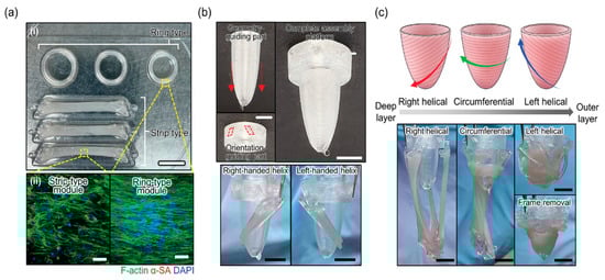 - Hwang, D.G.; Choi, H.; Yong, U.; Kim, D.; Kang, W.; Park, S.M.; Jang, J. Bioprinting-Assisted Tissue Assembly for Structural and Functional Modulation of Engineered Heart Tissue Mimicking Left Ventricular Myocardial Fiber Orientation. Adv. Mater. 2024, 36, 2400364. [Google Scholar] [CrossRef]
