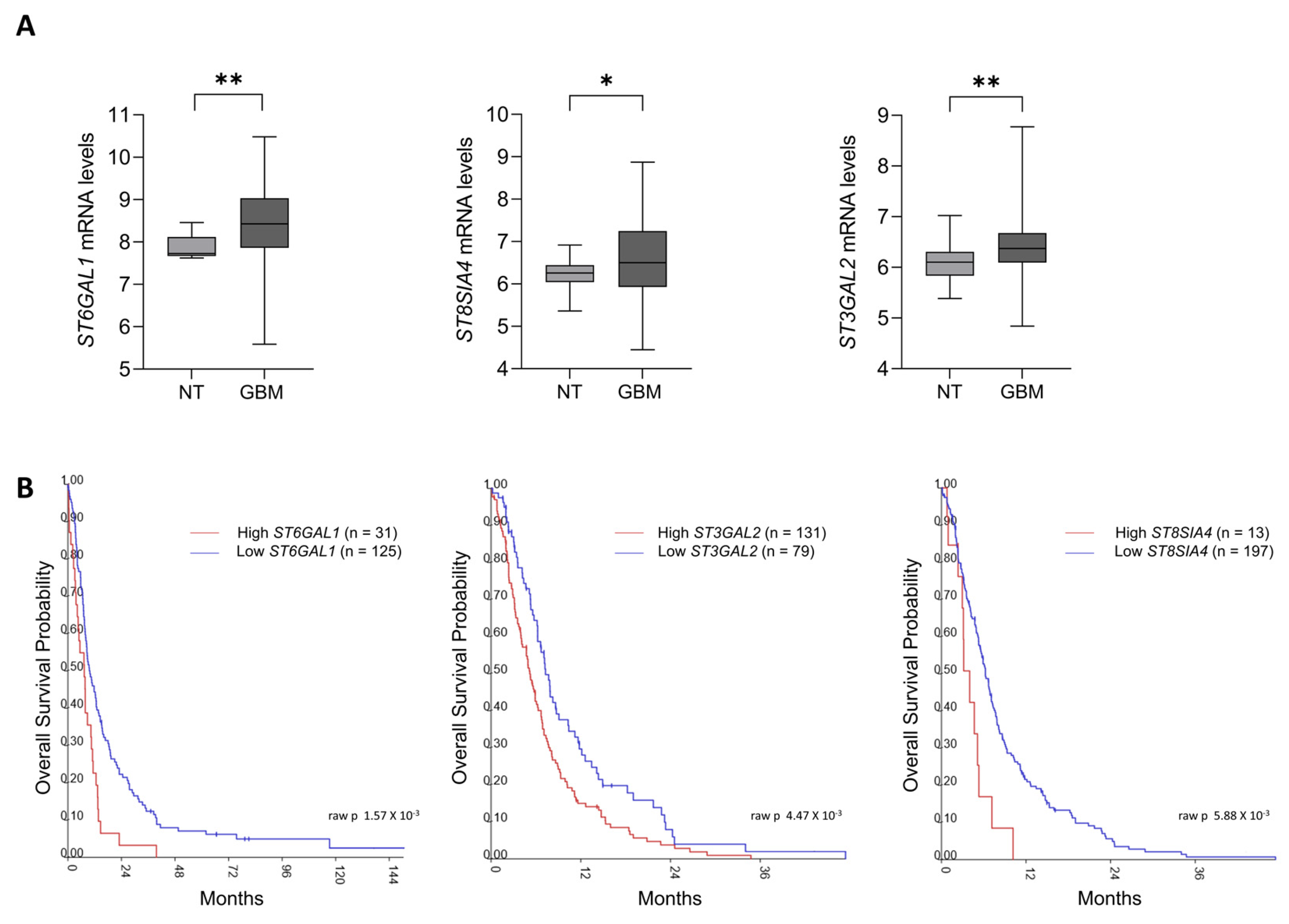 2.1. Sialyltransferases Up-Regulation Correlates with Poor Survival in GBM Patients