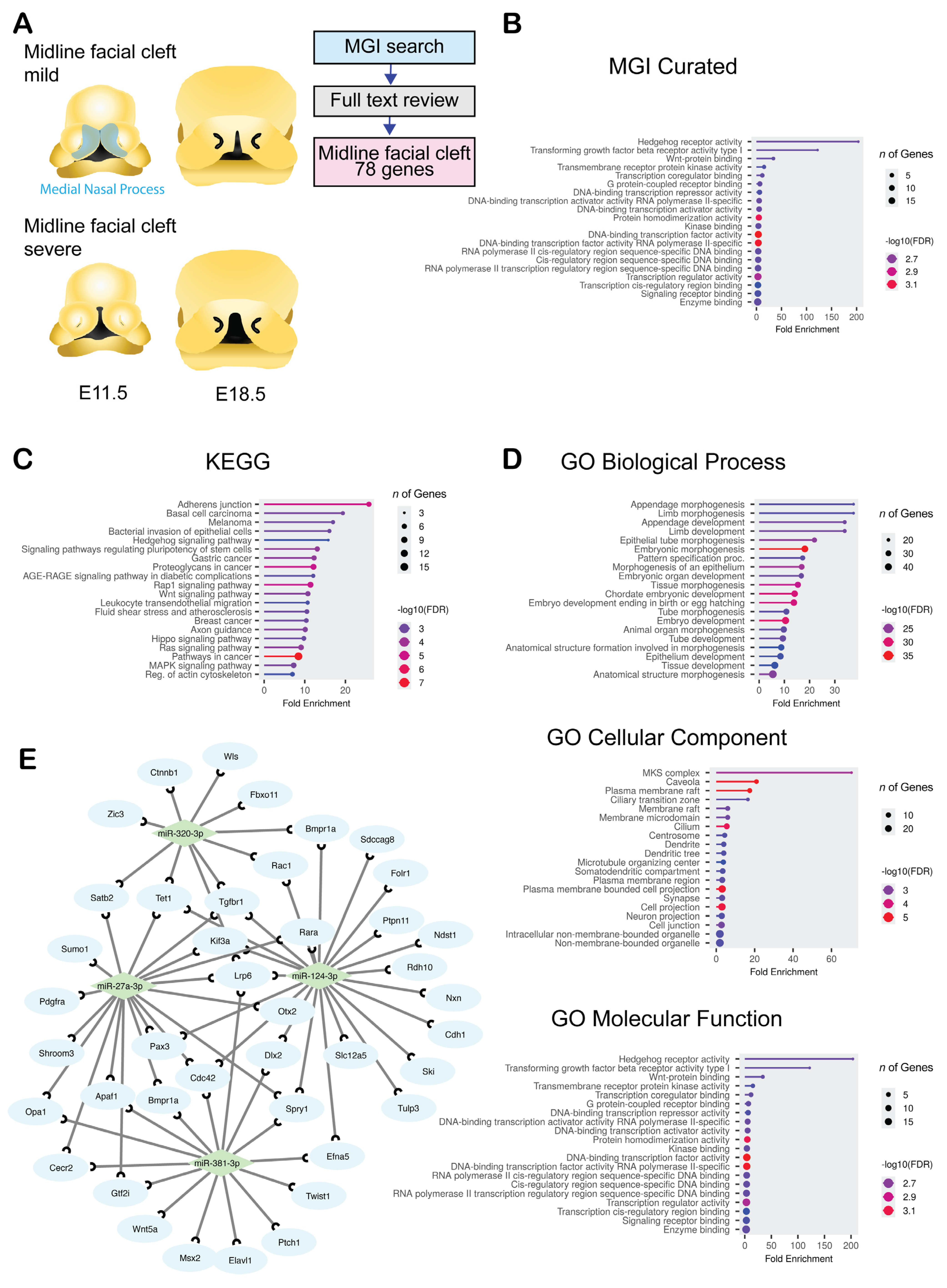 4.1. Gene Search for Mouse Midline Facial Clefts and Bioinformatics Analysis