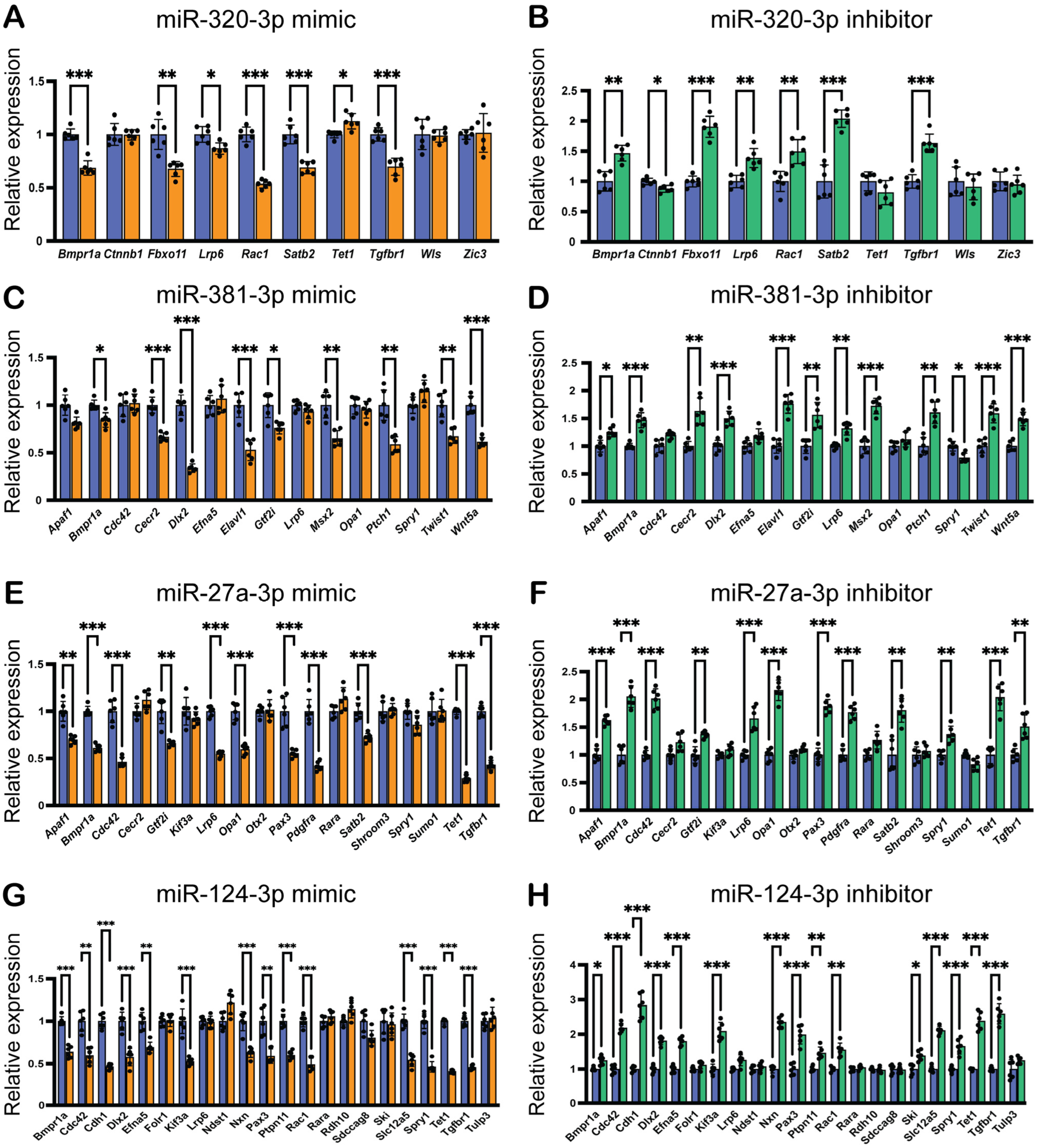| AAGGCAC | miR-124-3p | 9.98 × 10−4 | 8.25 × 10−6 | 22 | Bmpr1a, Cdc42, Cdh1, Dlx2, Efna5, Folr1, Kif3a, Lrp6, Ndst1, Nxn, Pax3, Ptpn11, Rac1, Rara, Rdh10, Sdccag8, Ski, Slc12a5, Spry1, Tet1, Tgfbr1, Tulp3 |