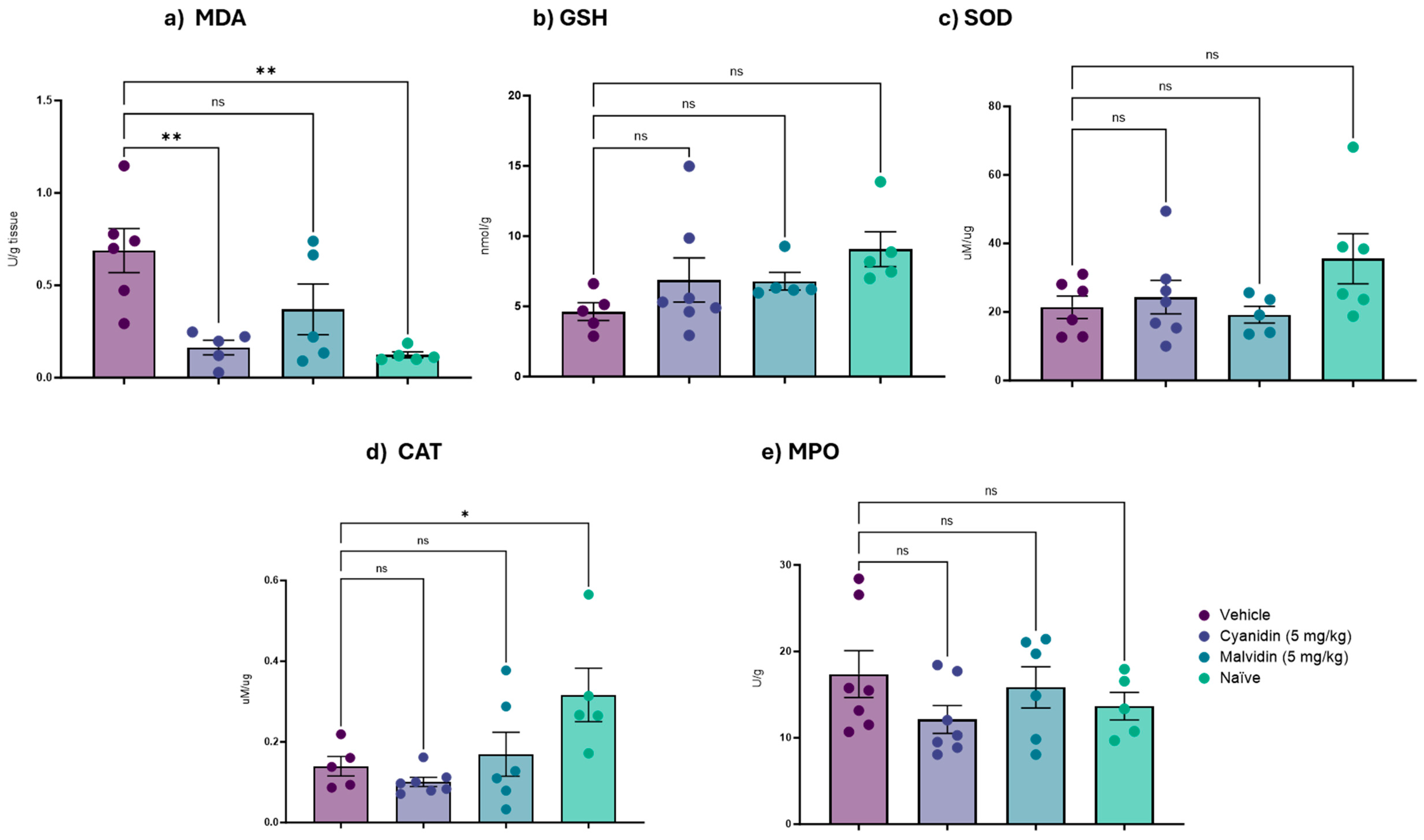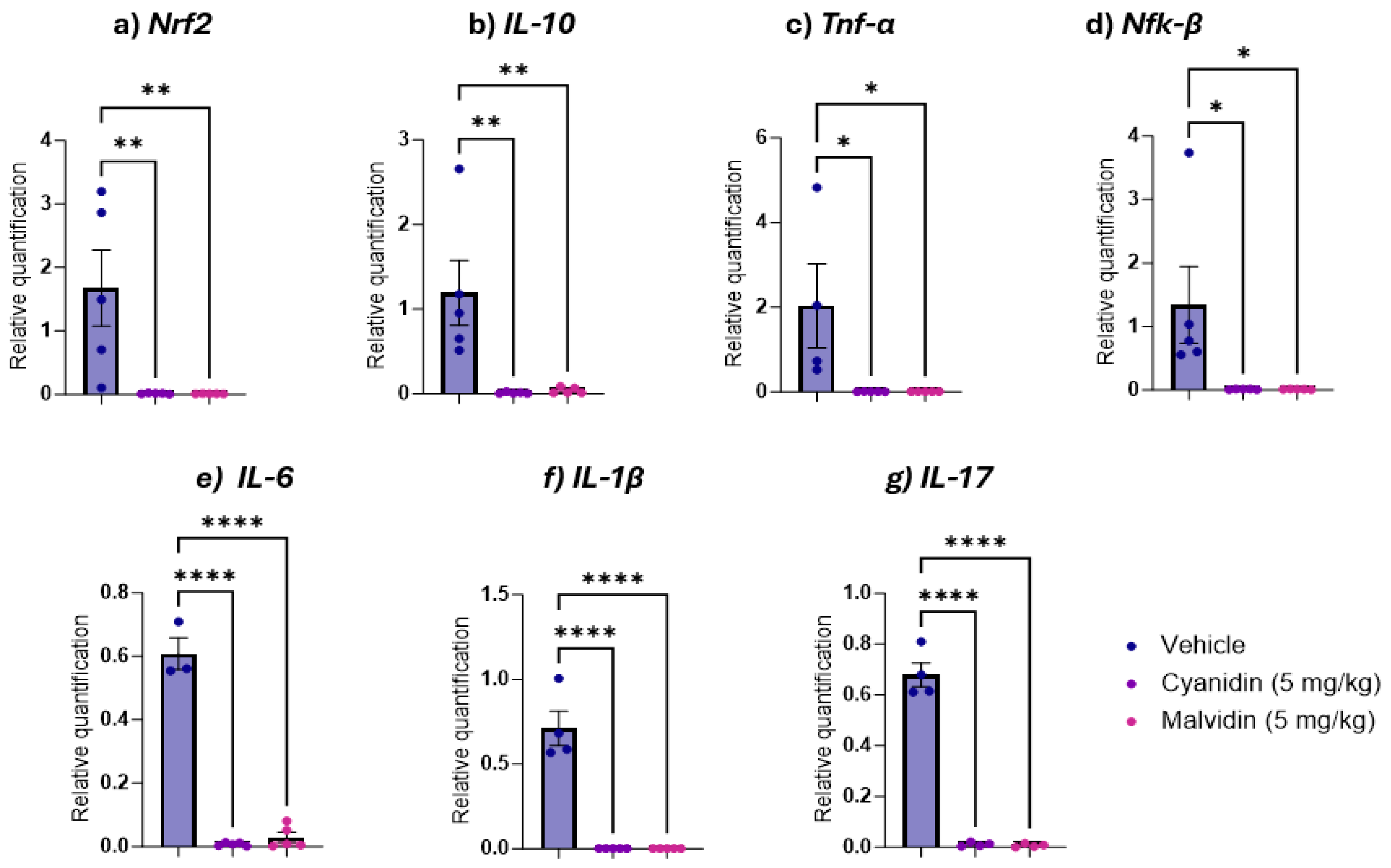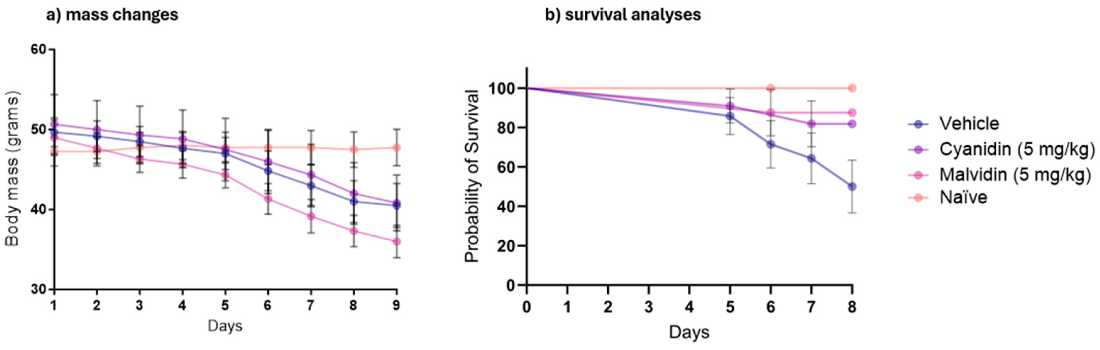 APA StyleMachado, G. F., Pereira, Q. C., Fagundes, F. L., Emílio-Silva, M. T., Rodrigues, V. P., Patiño, M. d. A., Jorge, G. I., Pereira, J. A., Martinez, C. A. R., Hiruma-Lima, C. A., & dos Santos, R. d. C. (2025). The Anthocyanidins Malvidin and Cyanidin Alleviate Irinotecan-Triggered Intestinal Mucositis by Modulating Oxidative Stress and Cytokine Release. International Journal of Molecular Sciences, 26(21), 10747. https://doi.org/10.3390/ijms262110747