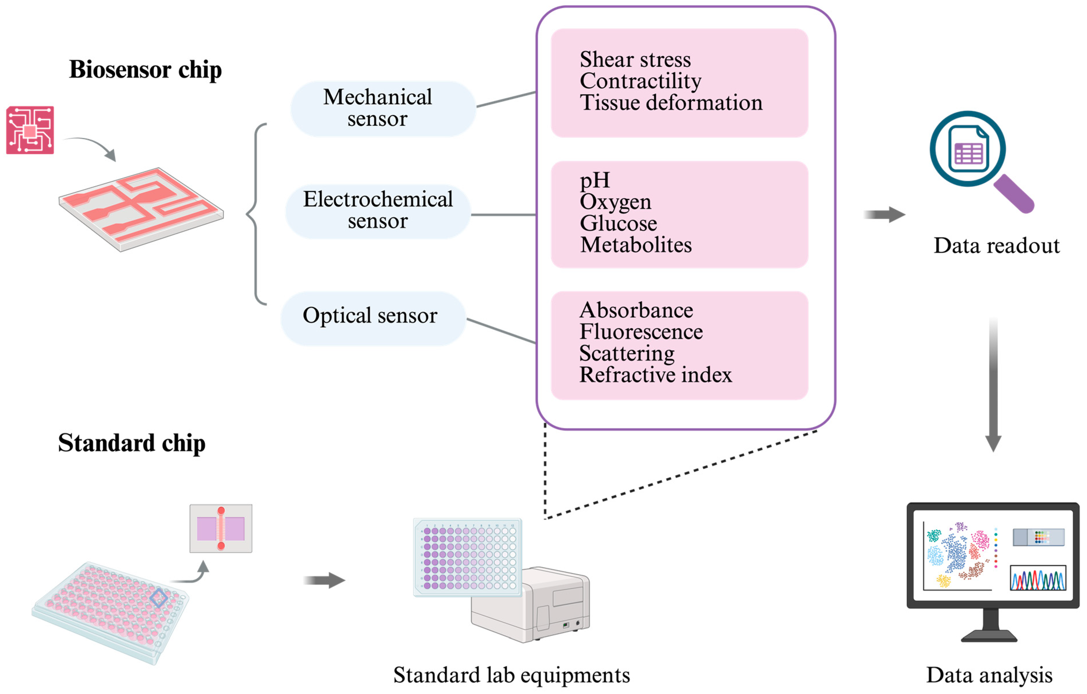 - Tawade, P.; Mastrangeli, M. Integrated Electrochemical and Optical Biosensing in Organs-on-Chip. Chembiochem 2024, 25, e202300560. [Google Scholar] [CrossRef]