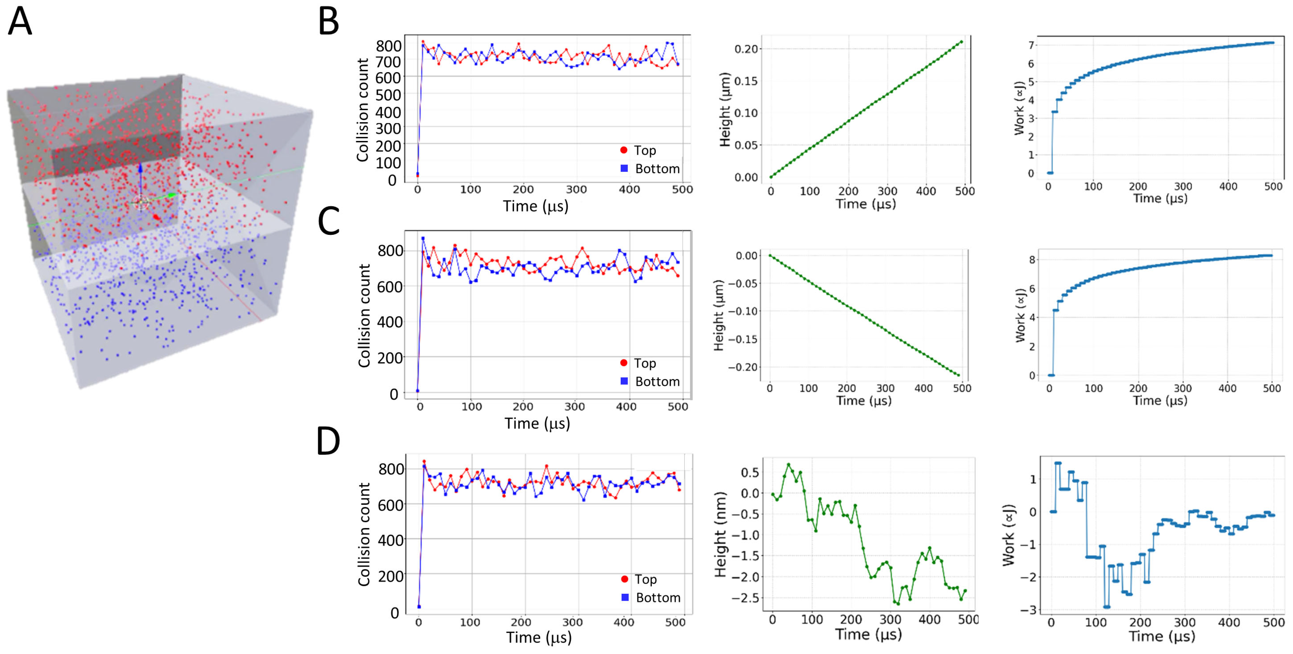 Figure 1A). This can be viewed as a simplified model of a piston relying on particle collisions. The particles were free to move in the top and bottom compartments of the piston chamber (