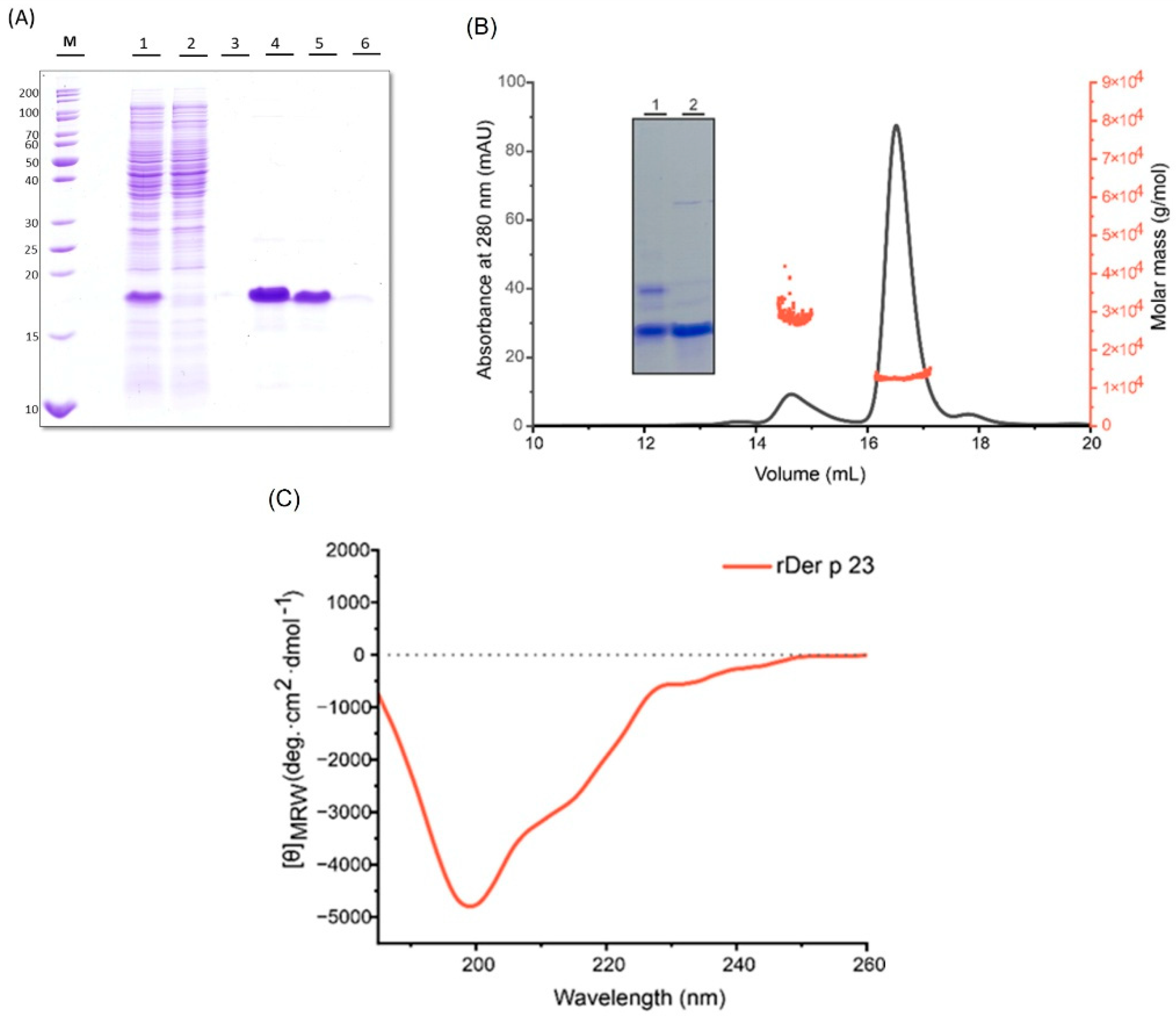 2.1. rDer p 23 Was Produced with a High Degree of Stability and Purity