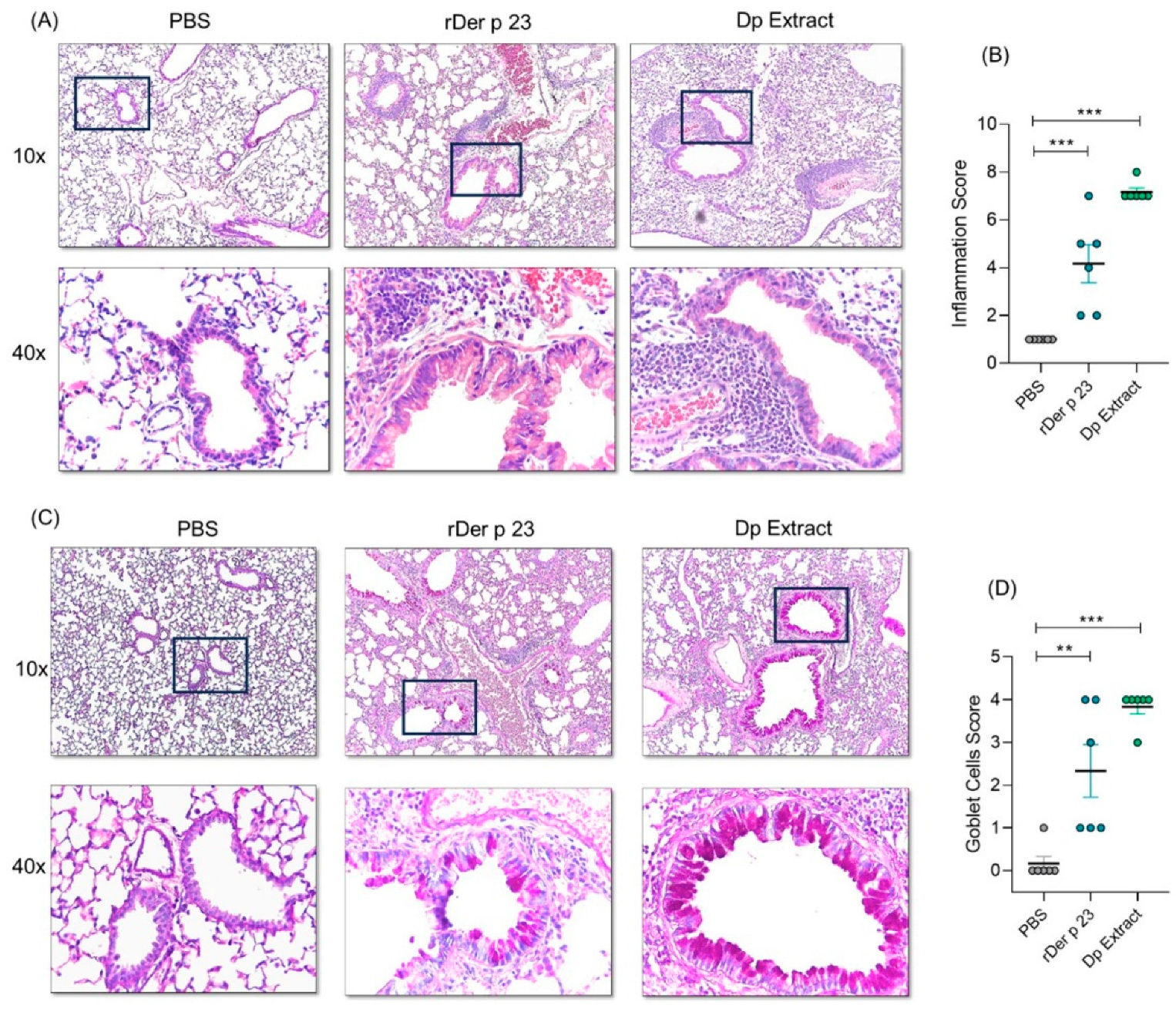2.3. rDer p 23 Induced Tissue Inflammation and Hypersecretion of Mucus in the Airways