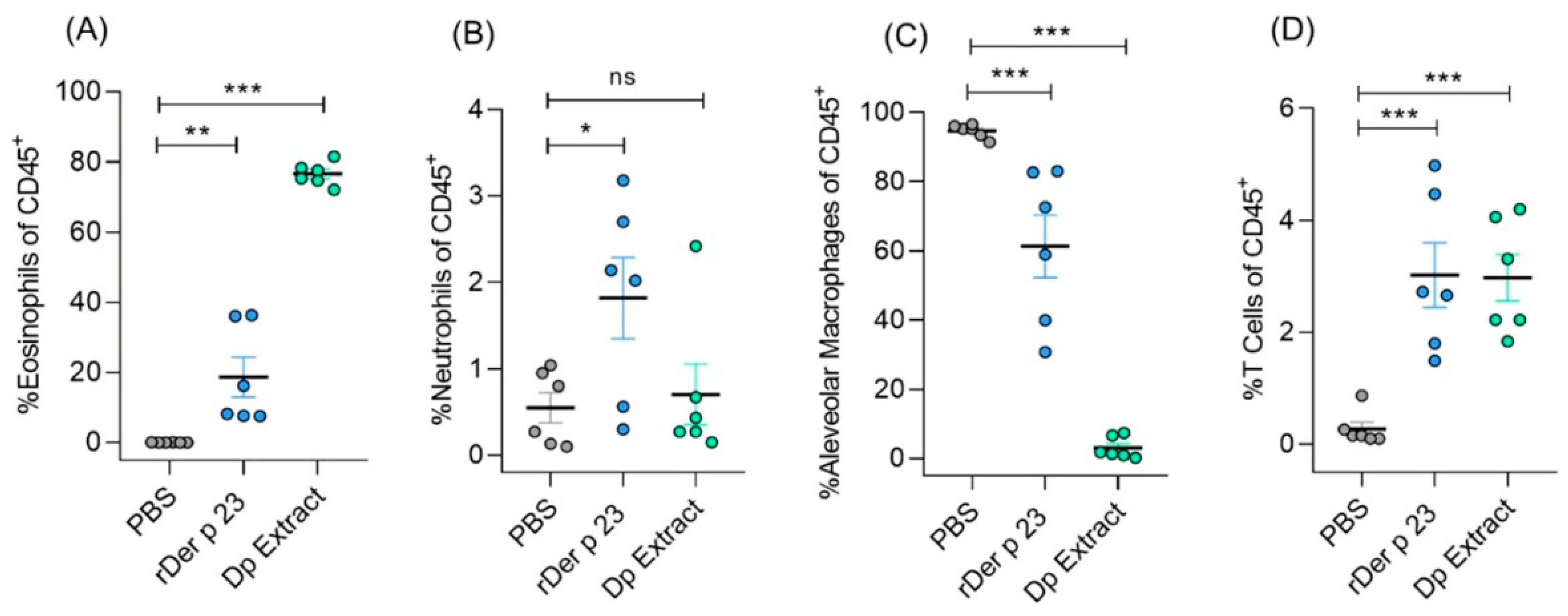 2.5. rDer p 23 Did Not Induce Significant Changes in ILC-2 Frequency in the Lung