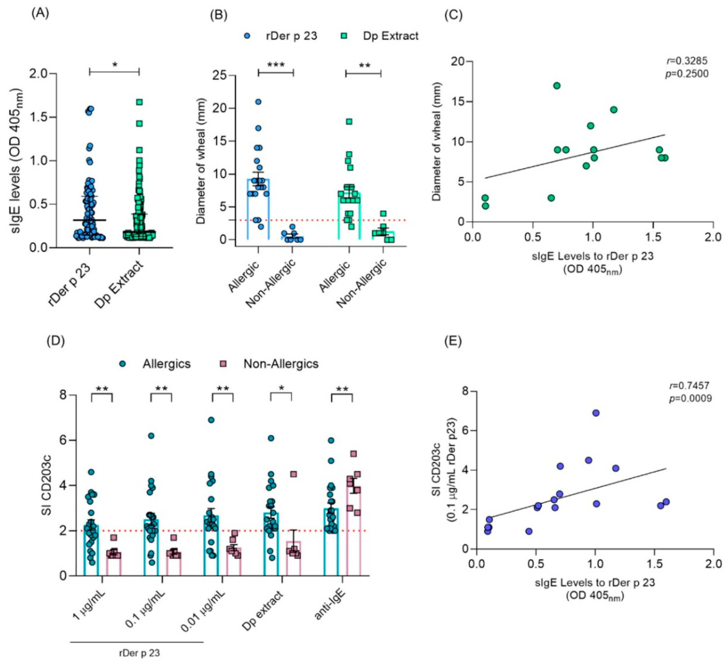 2.9. rDer p 23 Exhibits High IgE Reactivity in Asthmatic Patients