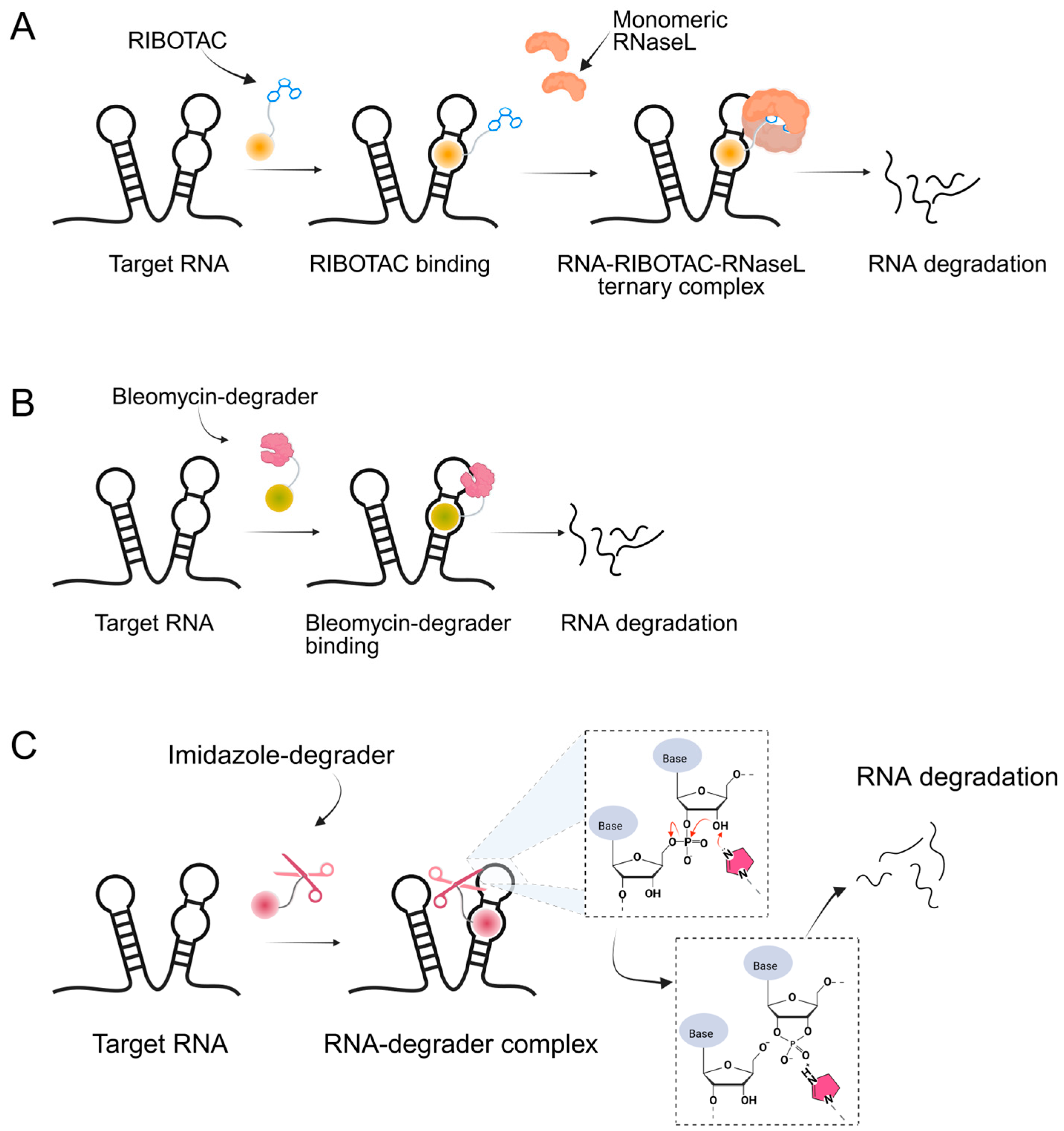 | RIBOTAC | Enzymatic cleavage by RNase L recruitment |