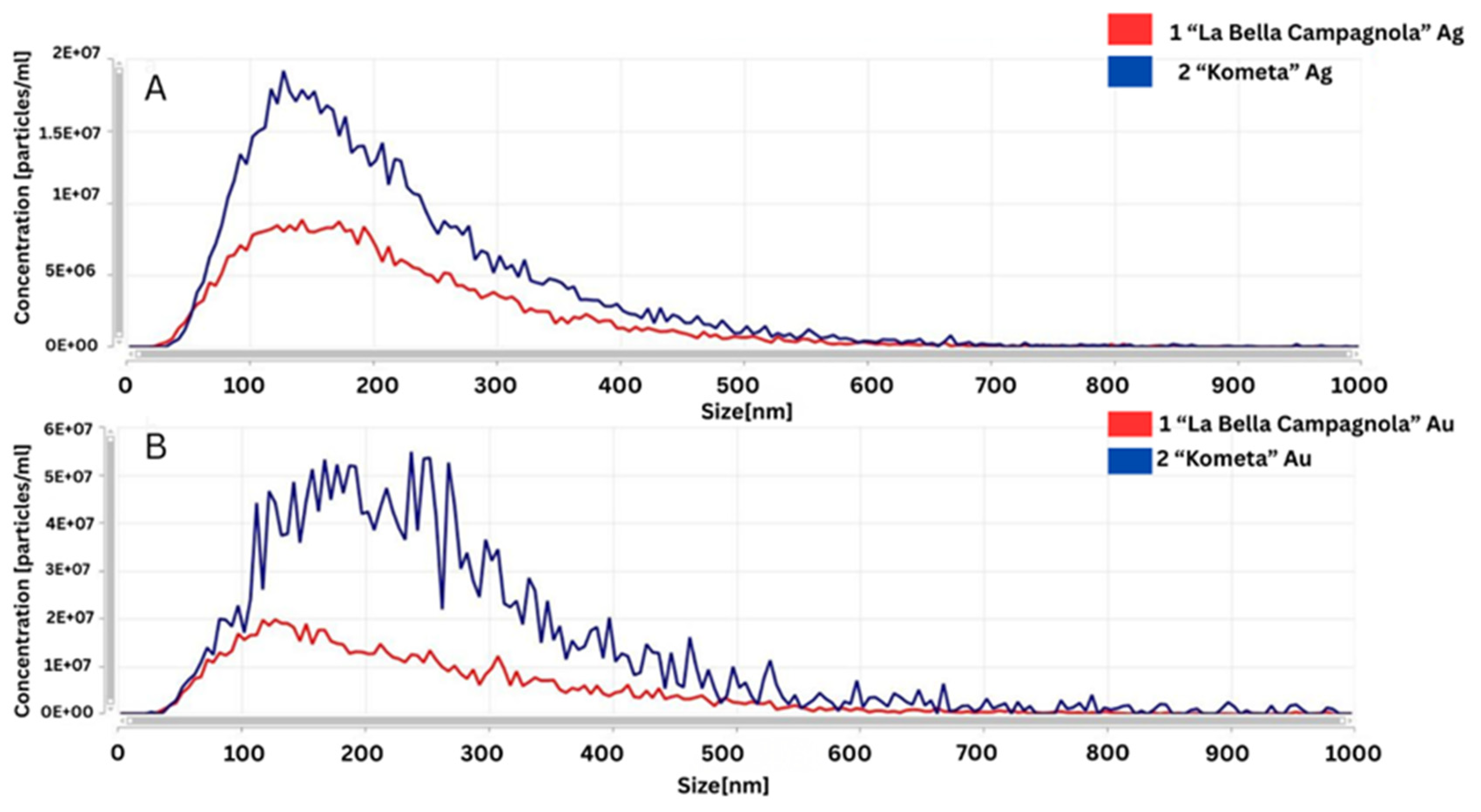 - Kokina, I.; Plaksenkova, I.; Jankovskis, L.; Jermaļonoka, M.; Galek, R. In Vivo Biosynthesis of Au and Ag NPs Using Two Medicago sativa L. Genotypes. Appl. Sci. 2024, 14, 2066. [Google Scholar] [CrossRef]