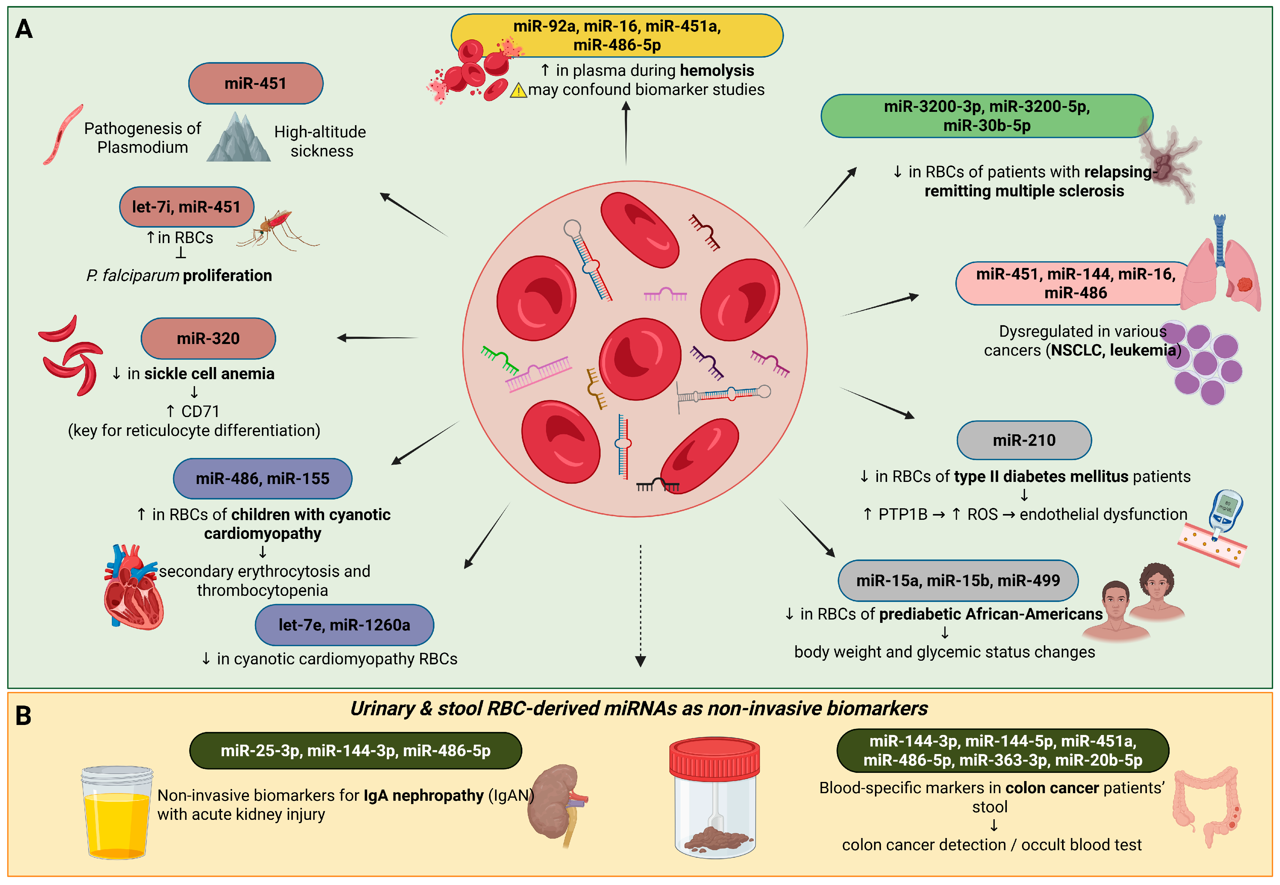 2.3. Possible Pathological Roles of Erythrocyte miRNAs in Various Diseases