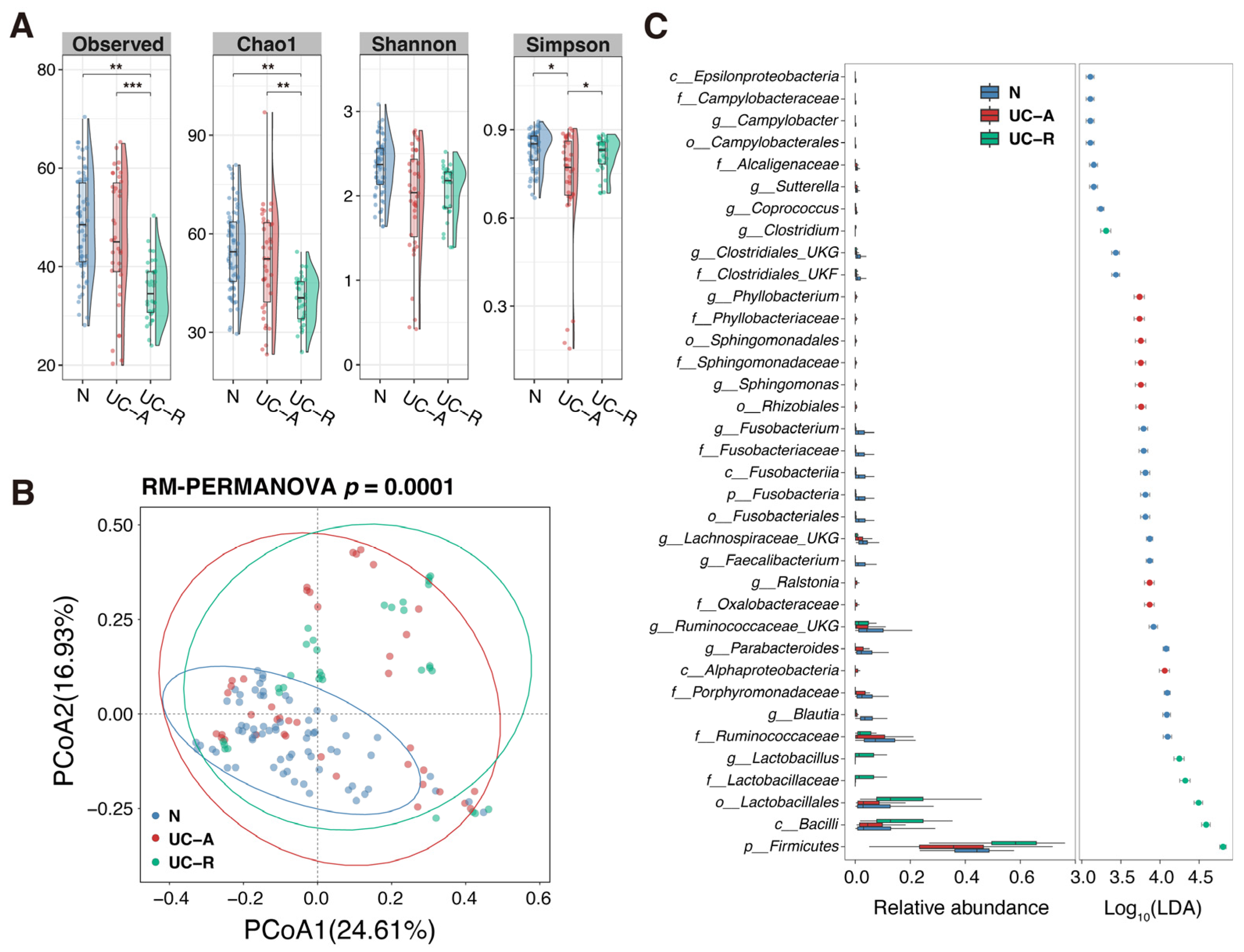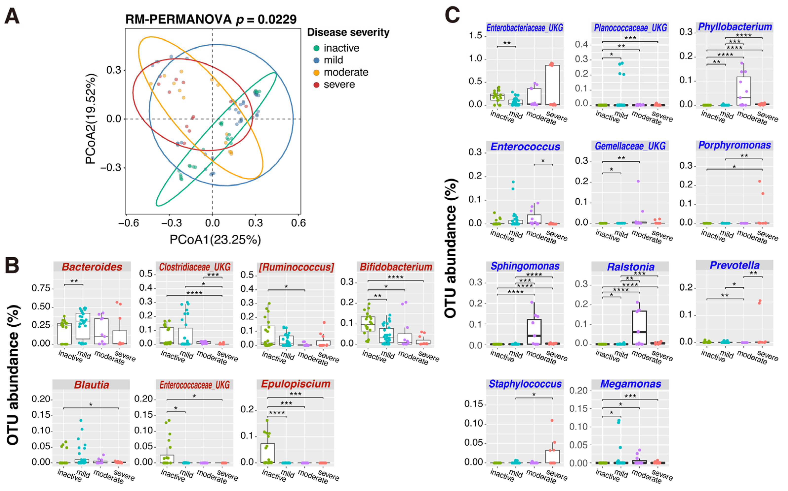 - Aggravation in UC disease severity or mucosal inflammation promotes inter-regional difference among the colonic MAMs, leading to the enrichment in microbes that usually reside in the oral cavity, oropharynx, upper intestine, or that have environmental origins.