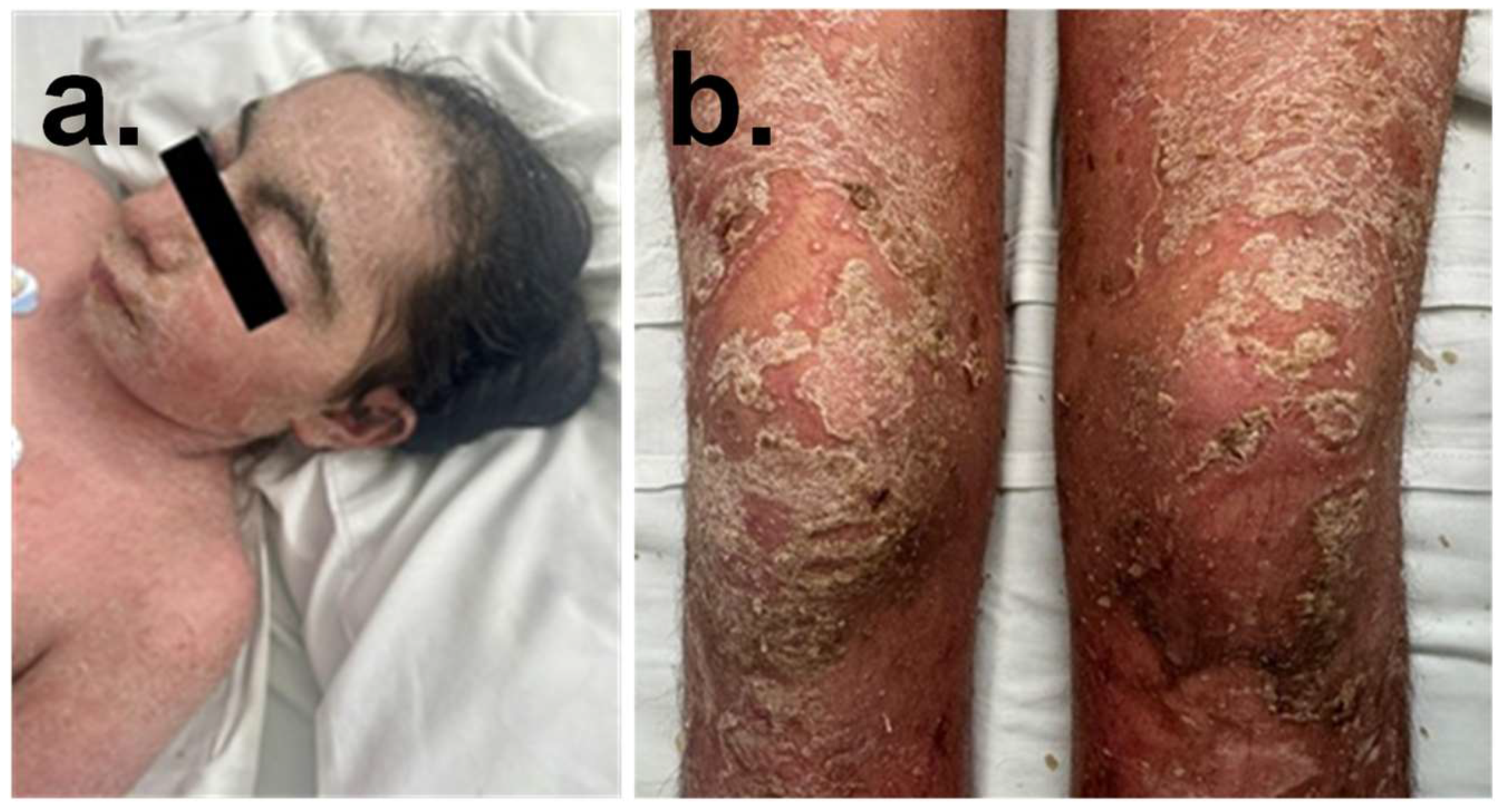 - Lee, C.C.; Huang, Y.H.; Chi, C.C.; Chung, W.H.; Chen, C.B. Generalized Pustular Psoriasis: Immunological Mechanisms, Genetics, and Emerging Therapeutics. Trends Immunol. 2025, 46, 74–89. [Google Scholar] [CrossRef]
