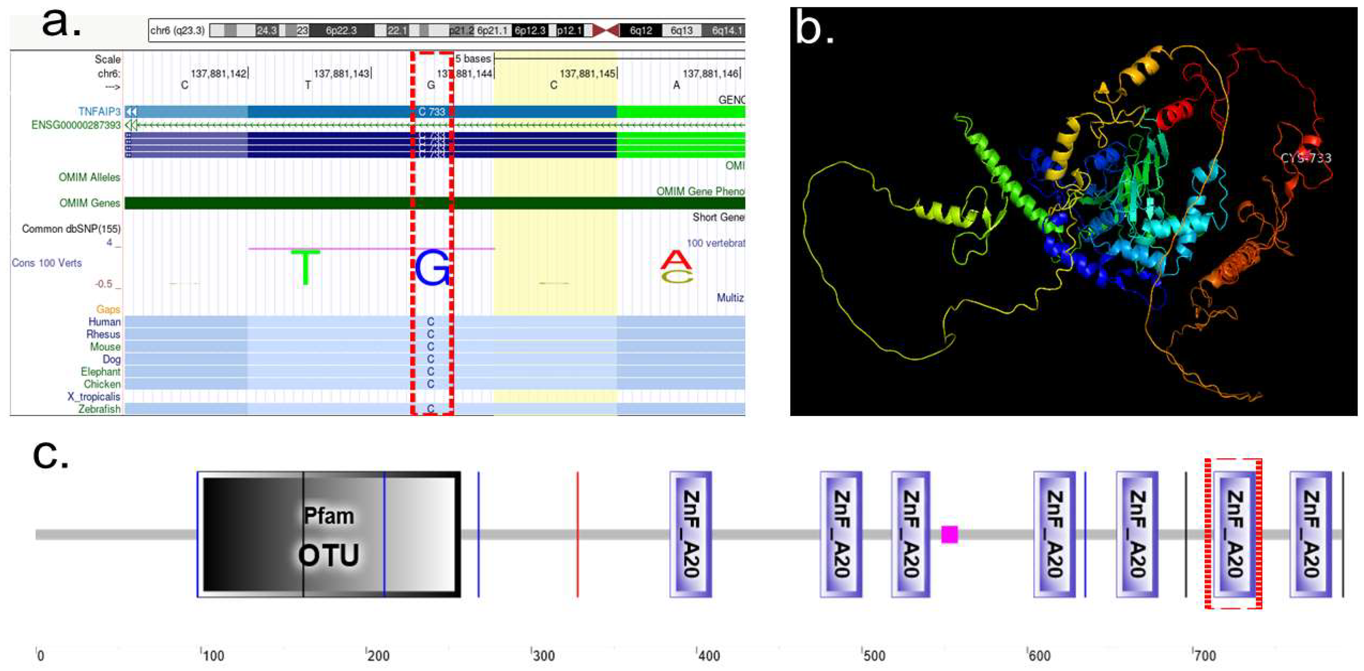 - Lee, D.; Karri, U.; Luo, Y.; Gedik, K.C.; Carpio Tumba, M.; Chhibbar, P.; Roy, P.; Falduto, G.; Das, J.; Schwartz, D. Rare TNFAIP3 Hypomorphic Variants Are a Massively Underestimated Driver of Human Autoinflammatory Disease. Available online: https://acrabstracts.org/abstract/rare-tnfaip3-hypomorphic-variants-are-a-massively-underestimated-driver-of-human-autoinflammatory-disease/ (accessed on 28 September 2025).