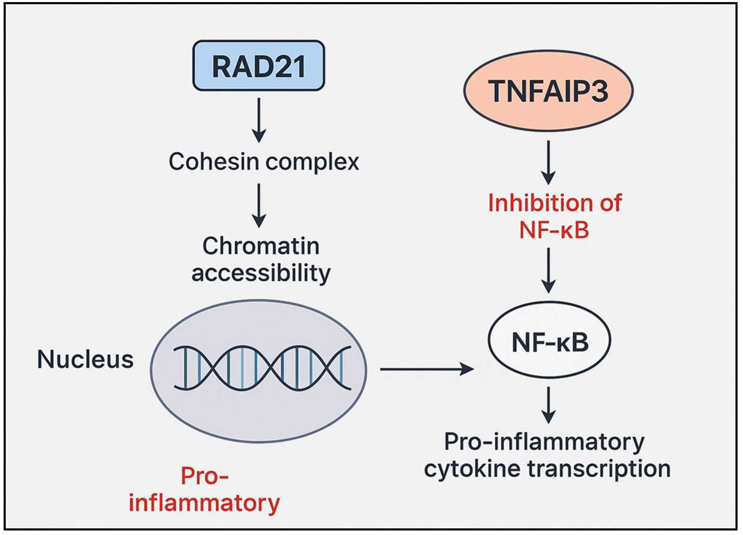 Orozco, B.E.; Orozco, C.V.; Meléndez, E.; Mangones, M.F.; Valderrama, J.; Lobato, A.; Garavito-Galofre, P.; Vélez, J.I.; Vidal, O.M. Co-Occurrence of RAD21 and TNFAIP3 Mutations in Cornelia de Lange Syndrome with Pustular Psoriasis: Potential Molecular Interactions. Int. J. Mol. Sci. 2025, 26, 10783. https://doi.org/10.3390/ijms262110783