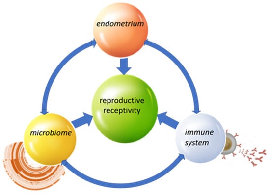 In recent years, numerous scientific studies have been reported to determine the composition of the uterine microbiome. The data obtained are not unambiguous, and the definition of a “normal uterine microbiome” is still a subject of discussion. Many researchers discuss the relationship between the bacterial communities in the uterus and the presence of a receptive, fertile endometrium; the course of normal or pathological pregnancy; and the development of uterine tumors.