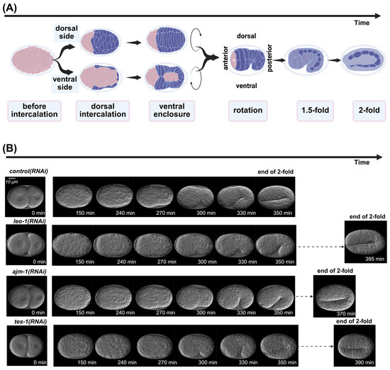 - Vuong-Brender, T.T.K.; Yang, X.; Labouesse, M.C. elegans Embryonic Morphogenesis. Curr. Top. Dev. Biol. 2016, 116, 597–616. [Google Scholar] [CrossRef]