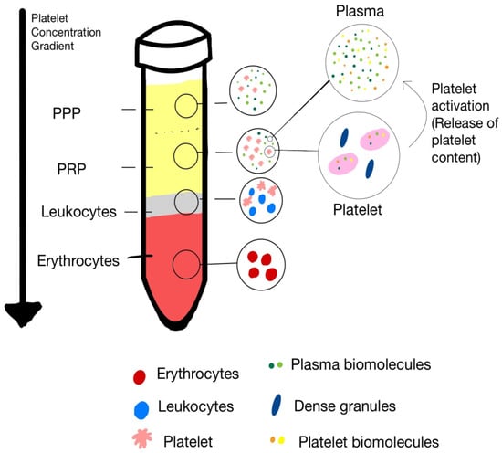 Currently, more than 16 commercially available autologous platelet-rich plasma (PRP) systems exist, contributing to substantial variability in collection and preparation protocols depending on the device employed [7,8]. Generally, PRP is produced through differential centrifugation, a process that separates whole blood components according to their specific gravity under controlled centrifugal force [9].