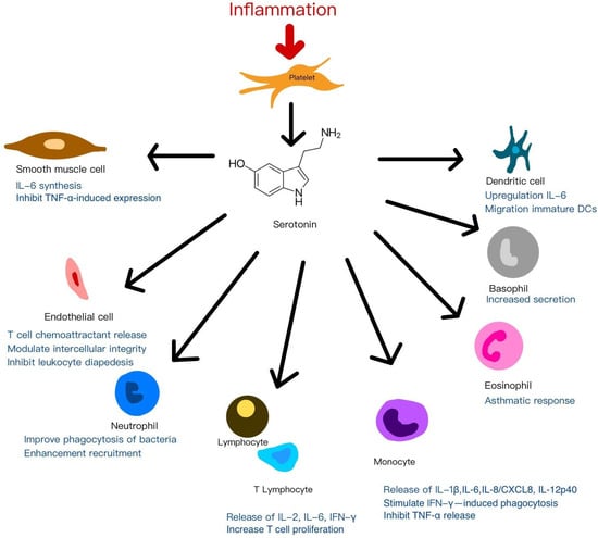 The mechanisms of anti-inflammatory and immunomodulation effects of platelets by serotonin signaling to adjacent cells.