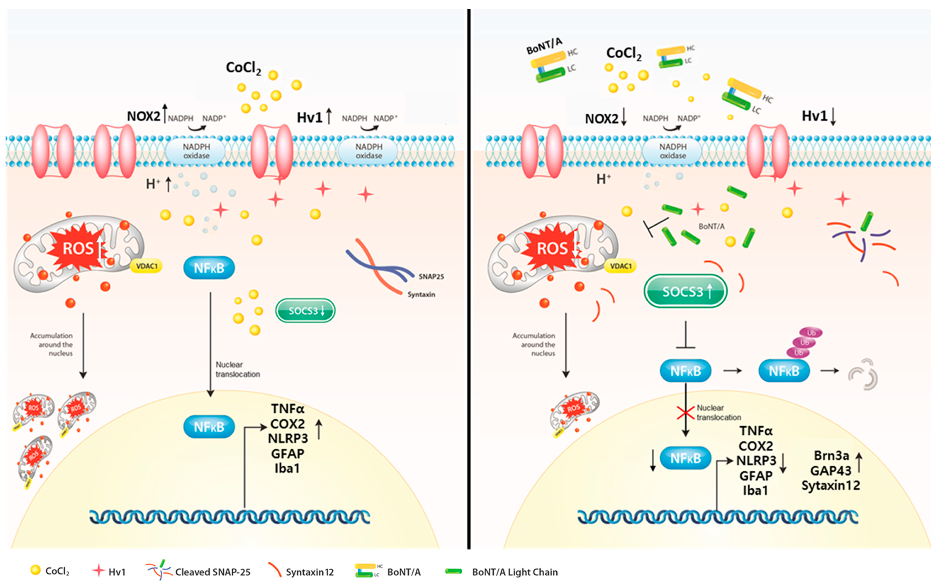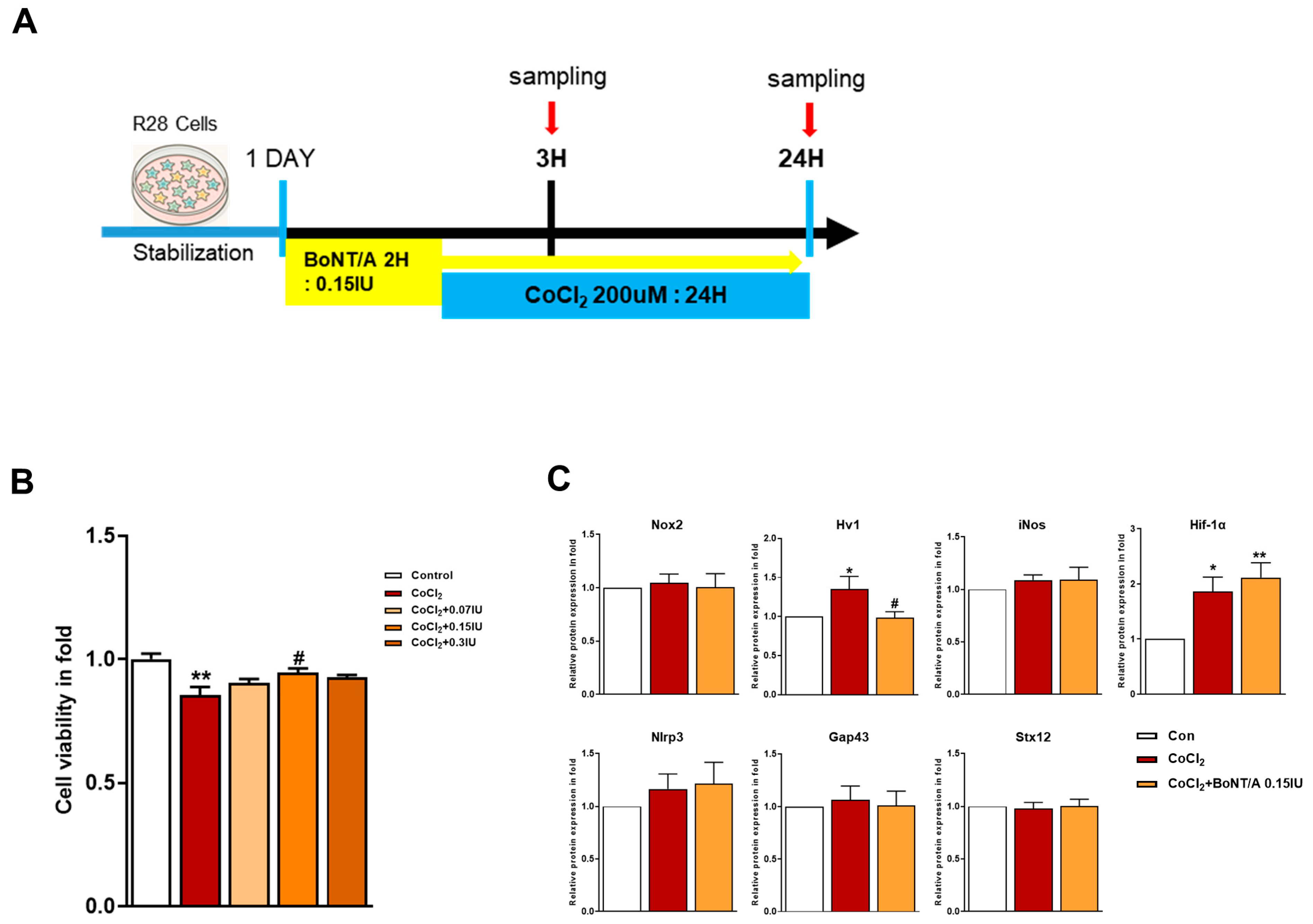 Lee, H.J.; Park, M.; Shin, H.-A.; Lew, H. Therapeutic Modulation of the Nox2–Hv1–ROS Axis by Botulinum Neurotoxin A Confers Protection Against CoCl2-Induced Retinal Hypoxic Injury. Int. J. Mol. Sci. 2025, 26, 10806. https://doi.org/10.3390/ijms262110806