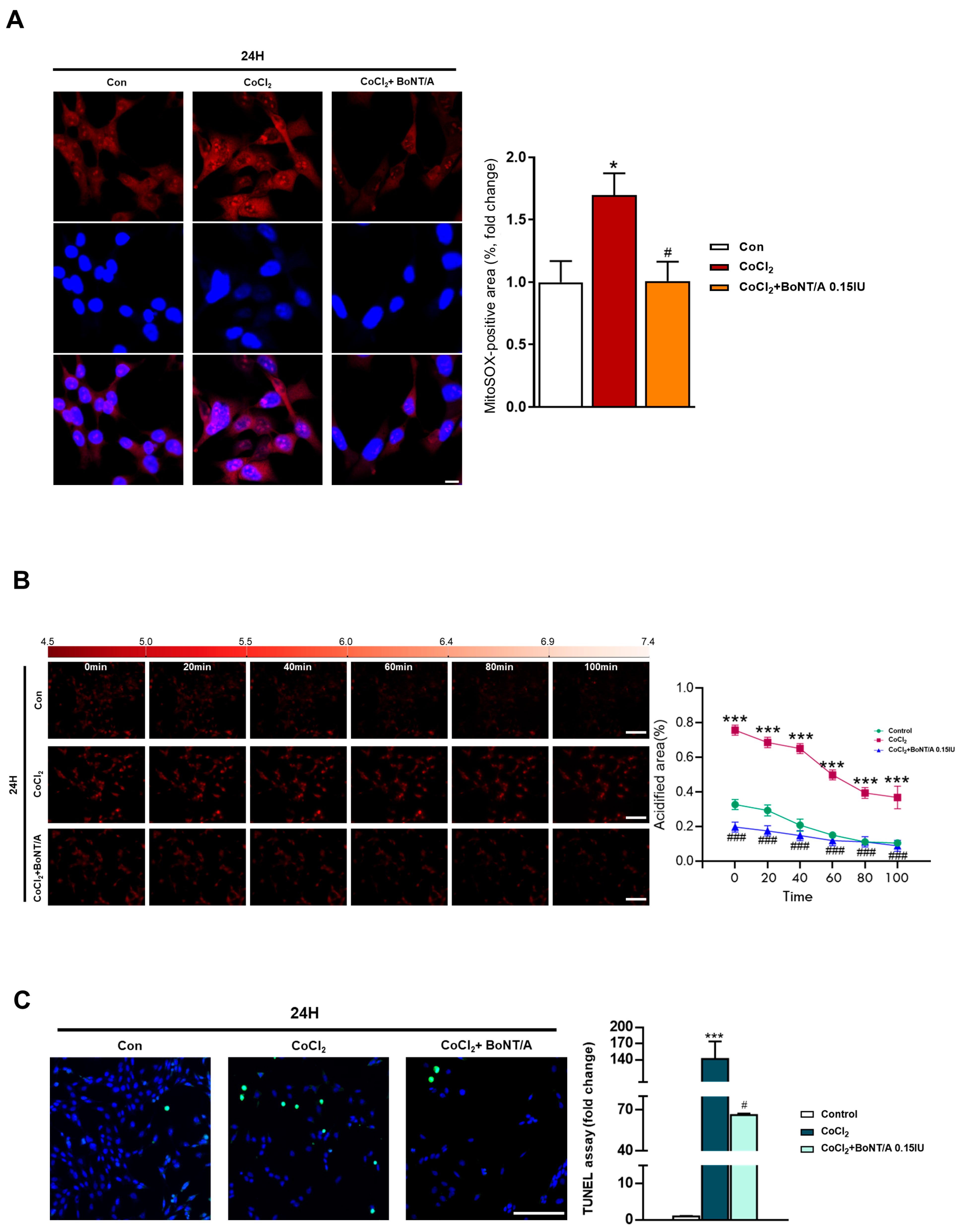 2.1. BoNT/A Regulates Hv1–Nox2-Dependent ROS Generation and Mitochondrial Dynamics to Counteract Hypoxia-Induced Injury in R28 Cells