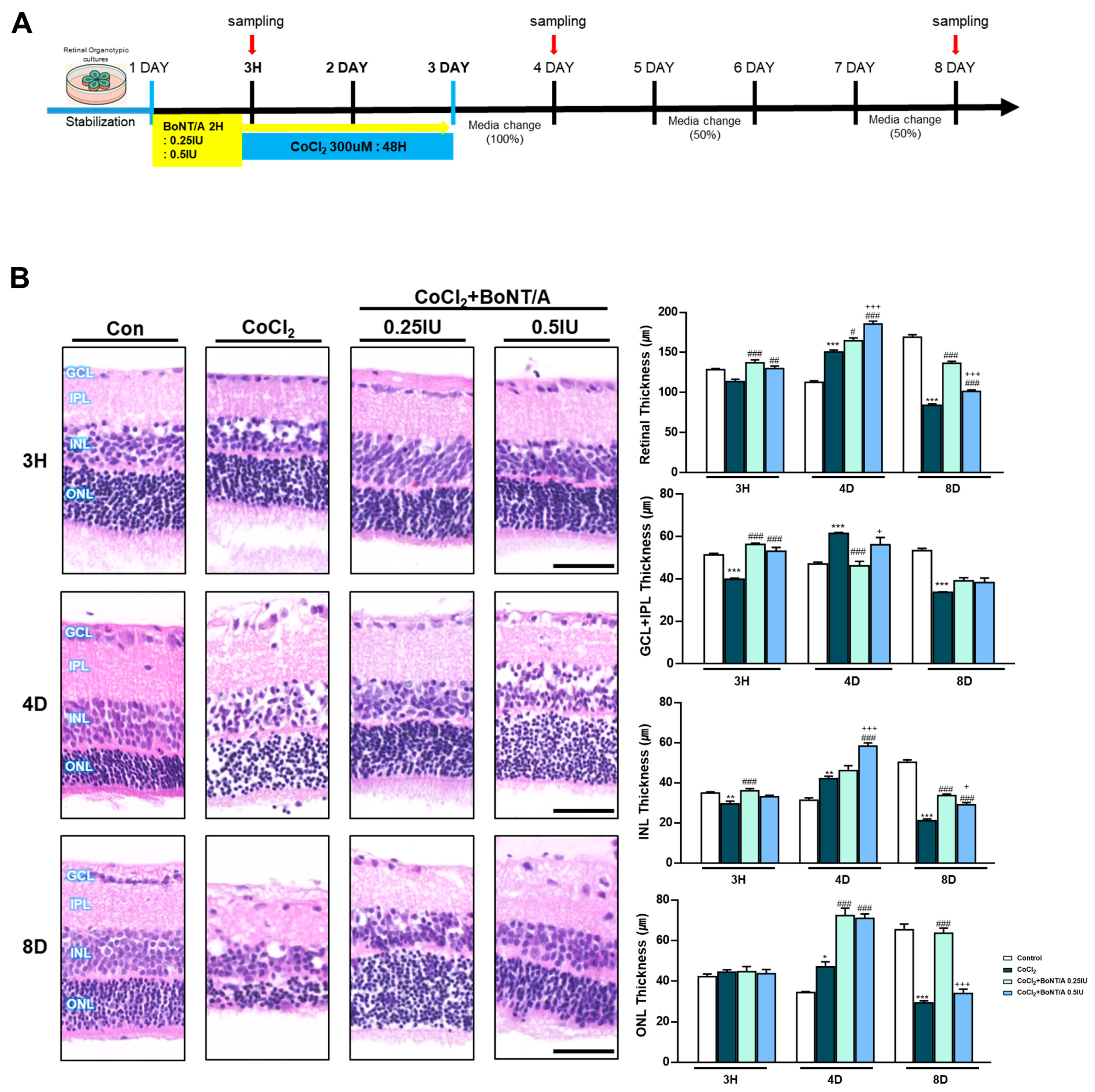 2.3. BoNT/A Offers Structural Protection and Reduces Hypoxia-Induced Cell Loss in Ex Vivo Retinal Models