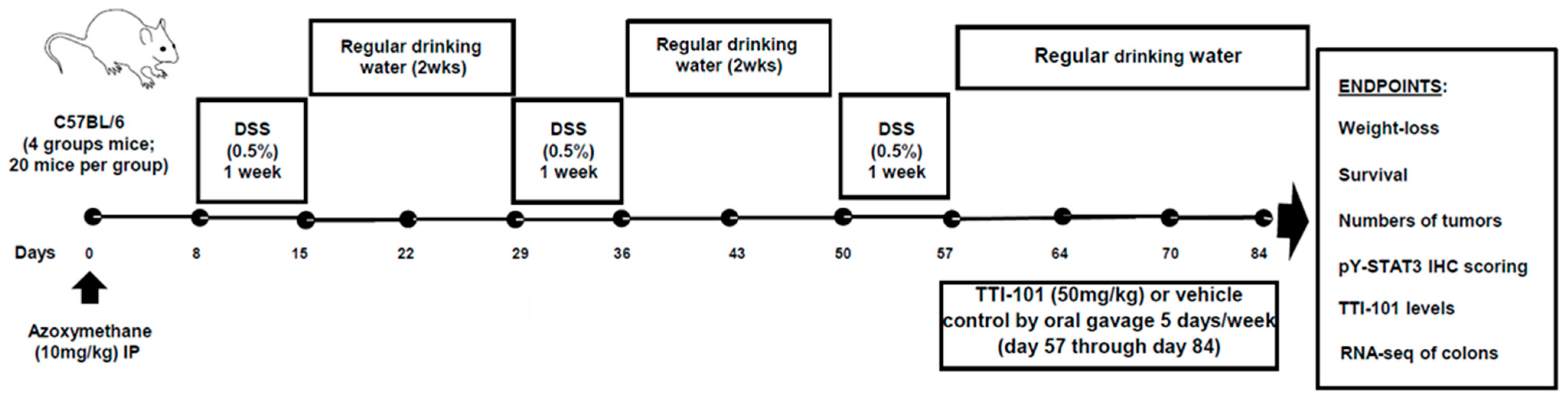 4.2. Measurement of TTI-101 in Plasma and Colons