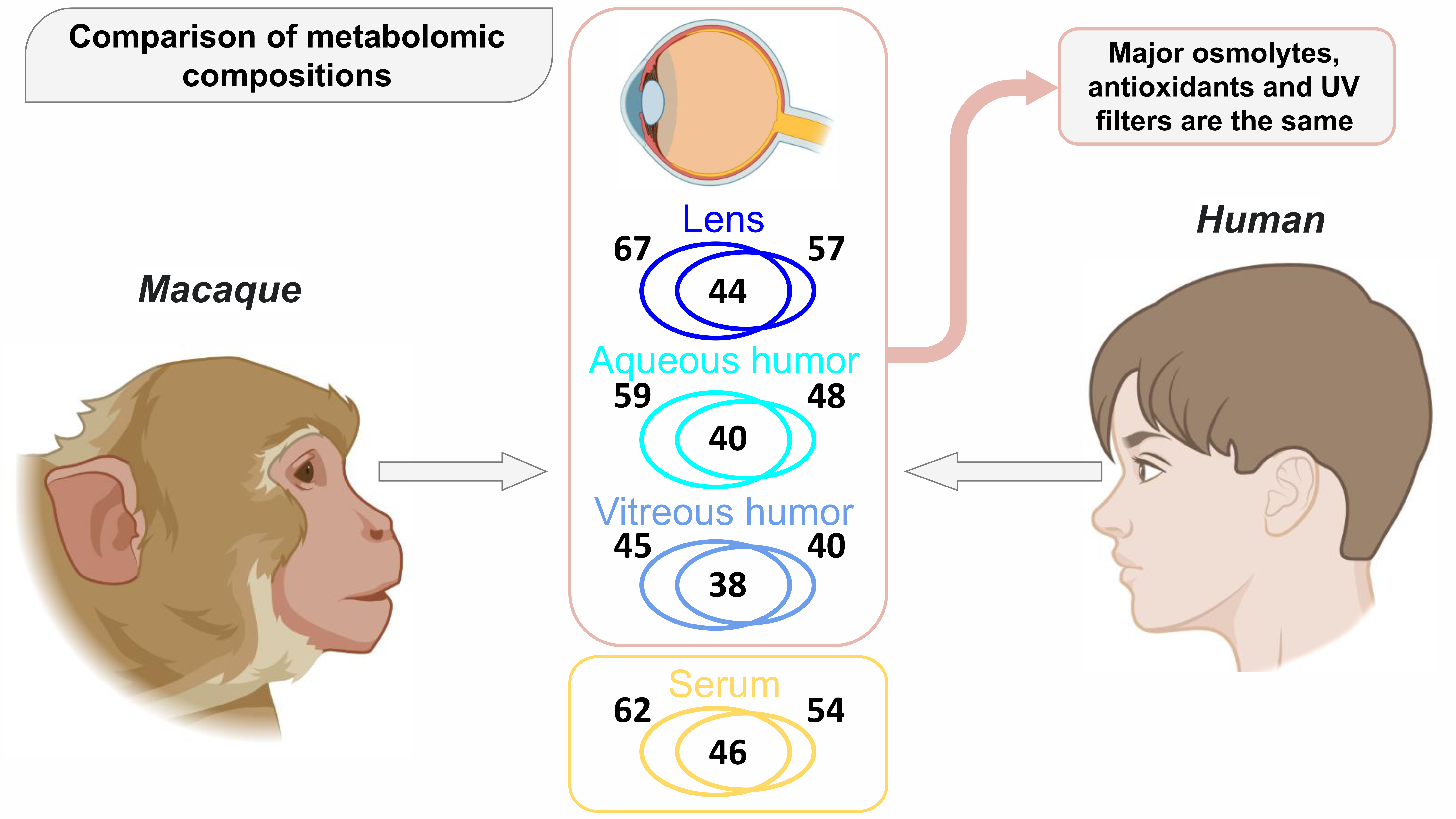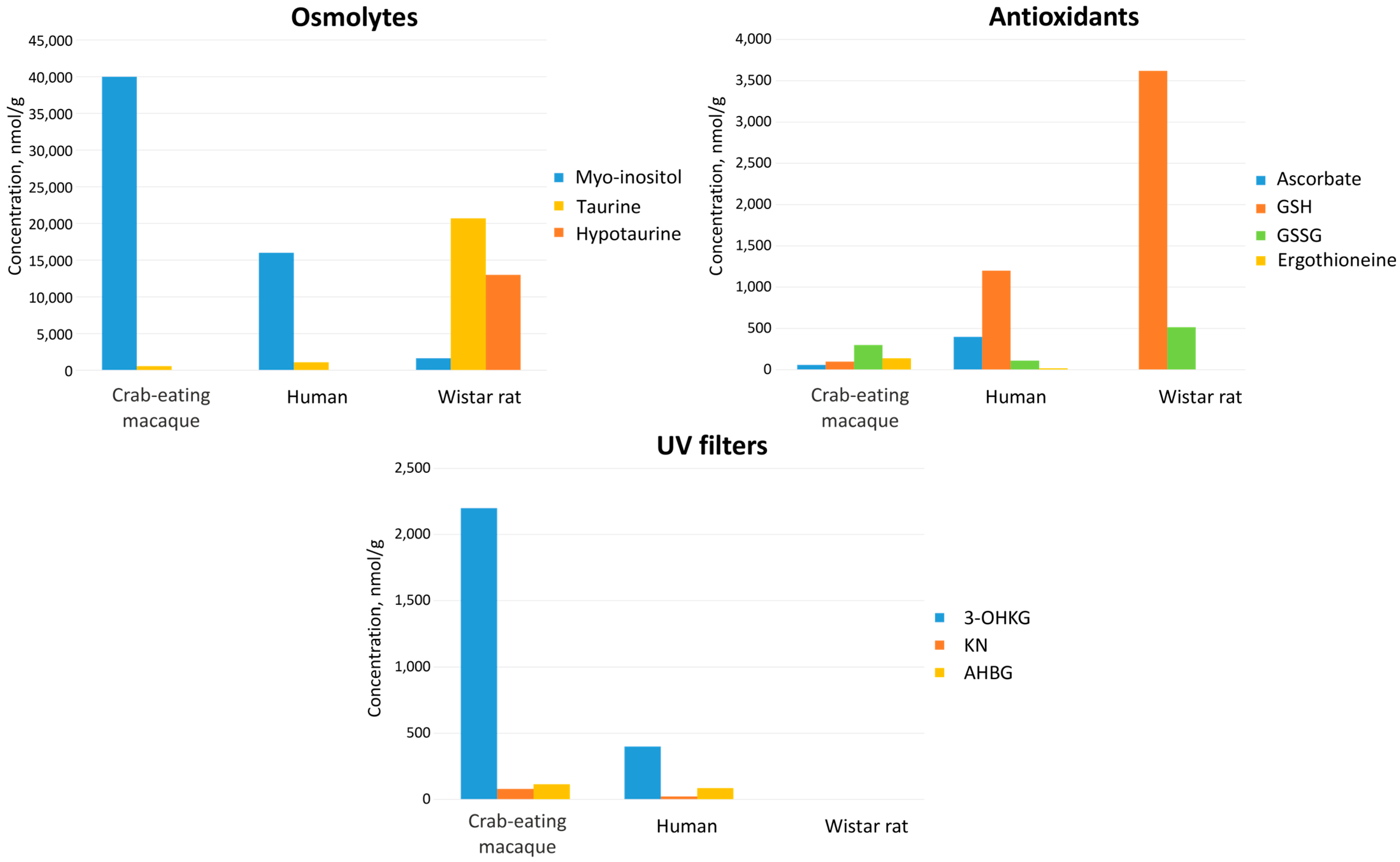 Fomenko, M.V.; Yanshole, L.V.; Yanshole, V.V.; Radomskaya, E.Y.; Bulgin, D.V.; Sagdeev, R.Z.; Tsentalovich, Y.P. Cytoprotective Compounds in the Primate Eye: Baseline Metabolomic Profiles of Macaca fascicularis Ocular Tissues. Int. J. Mol. Sci. 2025, 26, 10816. https://doi.org/10.3390/ijms262210816