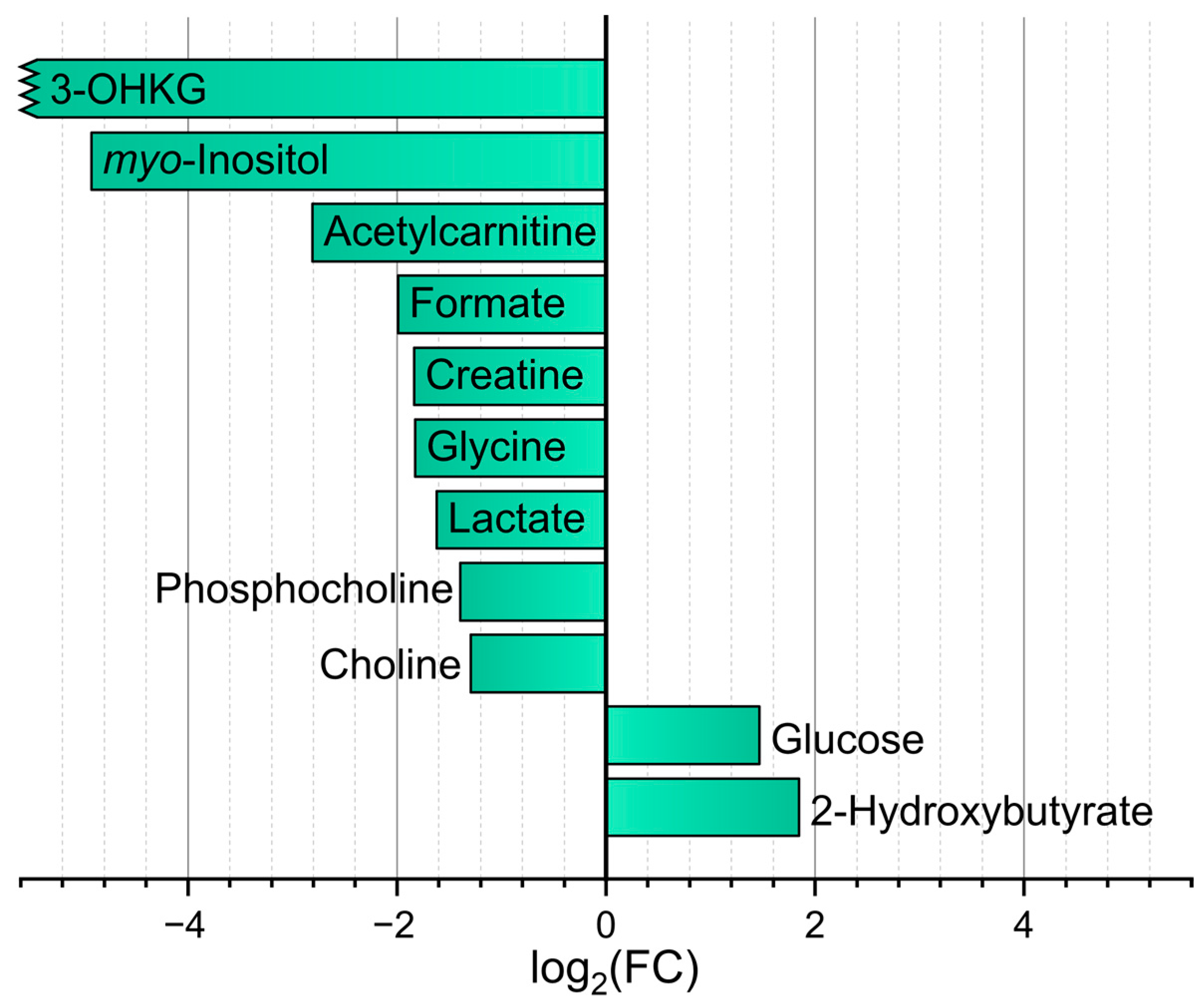 | myo-Inositol | 92 ± 11 | 110 ± 40 | 2900 ± 1100 | 40,000 ± 5000 | 180 ± 40 |