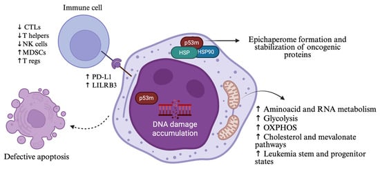 - Sallman, D.A.; McLemore, A.F.; Aldrich, A.L.; Komrokji, R.S.; McGraw, K.L.; Dhawan, A.; Geyer, S.; Hou, H.-A.; Eksioglu, E.A.; Sullivan, A.; et al. TP53 Mutations in Myelodysplastic Syndromes and Secondary AML Confer an Immunosuppressive Phenotype. Blood 2020, 136, 2812–2823. [Google Scholar] [CrossRef]