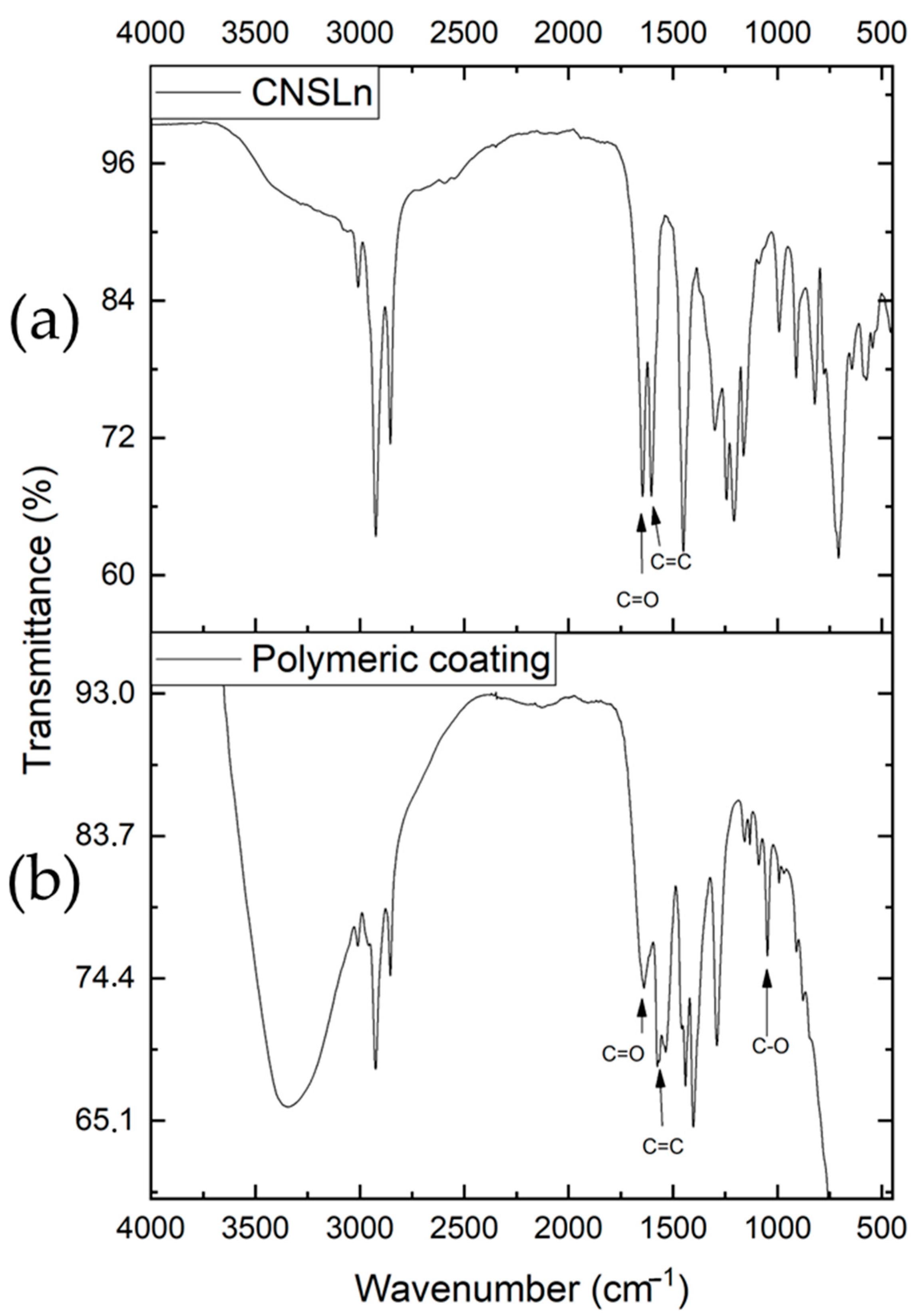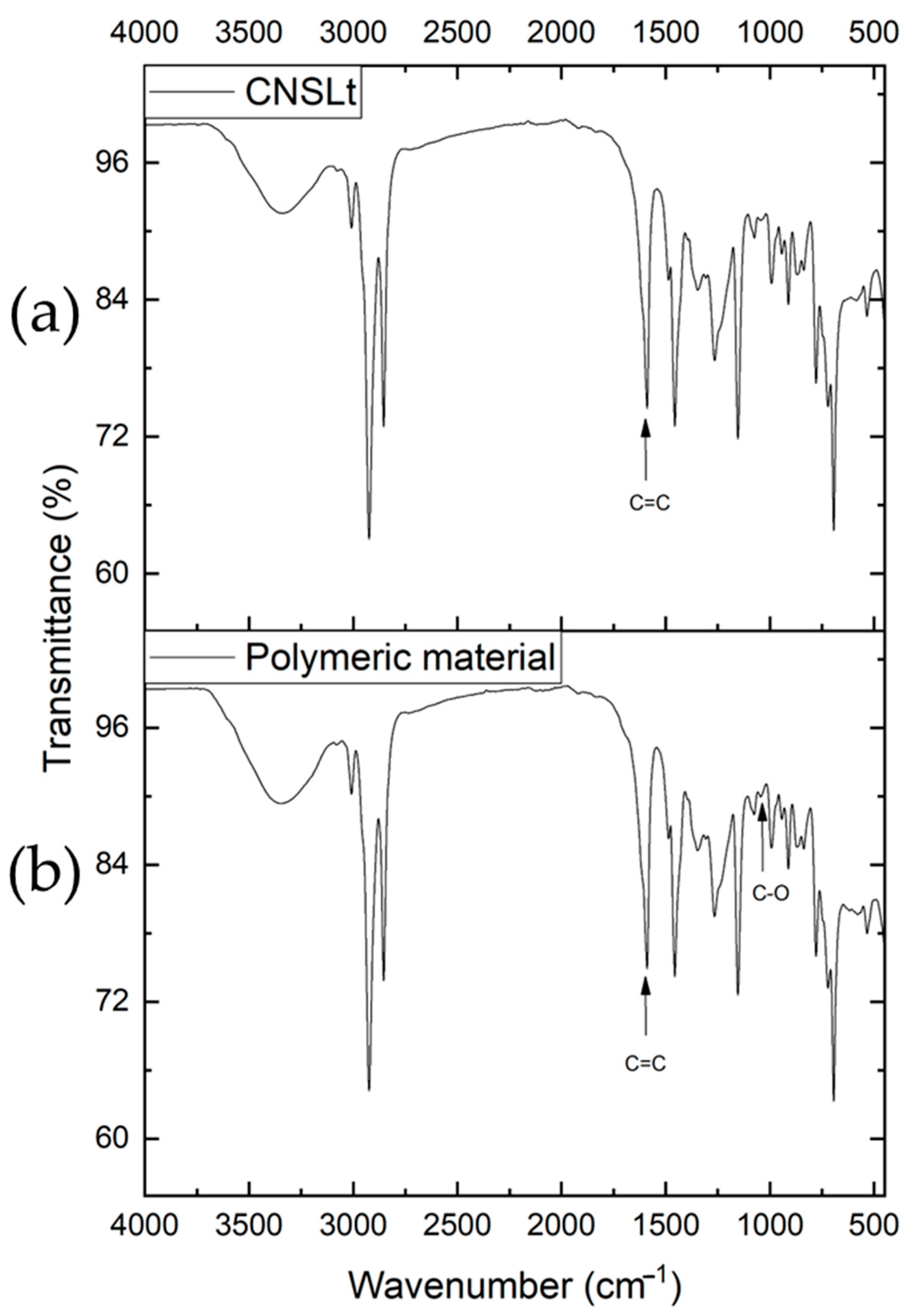 - Rodrigues, F.H.; França, F.C.; Souza, J.R.; Ricardo, N.M.; Feitosa, J. Comparison between physico-chemical properties of the technical Cashew Nut Shell Liquid (CNSL) and those natural extracted from solvent and pressing. Polímeros 2011, 21, 156–160. [Google Scholar] [CrossRef]