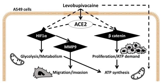 - Iwasaki, M.; Yamamoto, M.; Tomihari, M.; Ishikawa, M. Ropivacaine Administration Suppressed A549 Lung Adenocarcinoma Cell Proliferation and Migration via ACE2 Upregulation and Inhibition of the Wnt1 Pathway. Int. J. Mol. Sci. 2024, 25, 9334. [Google Scholar] [CrossRef] [PubMed]