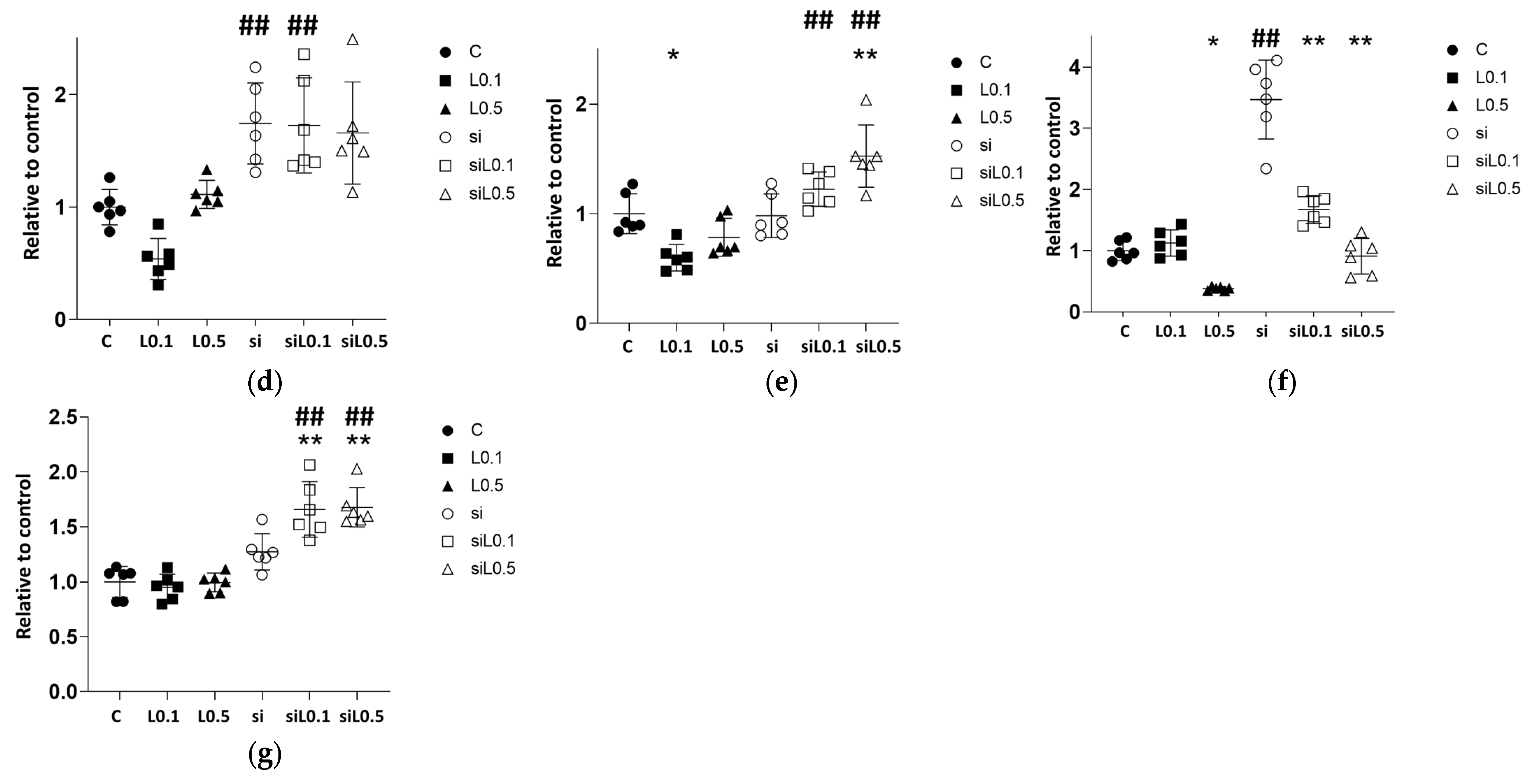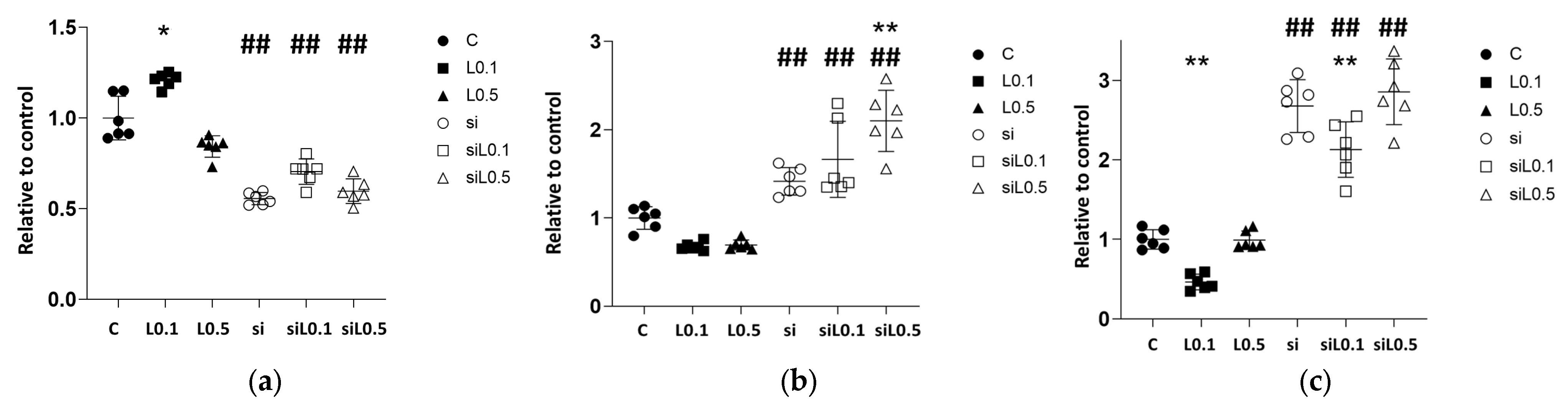 2.2.1. Levobupivacaine Treatment Led to an Increase in ACE2 mRNA Expression, Whereas the Administration of siRNA Significantly Reduced the Expression of ACE2