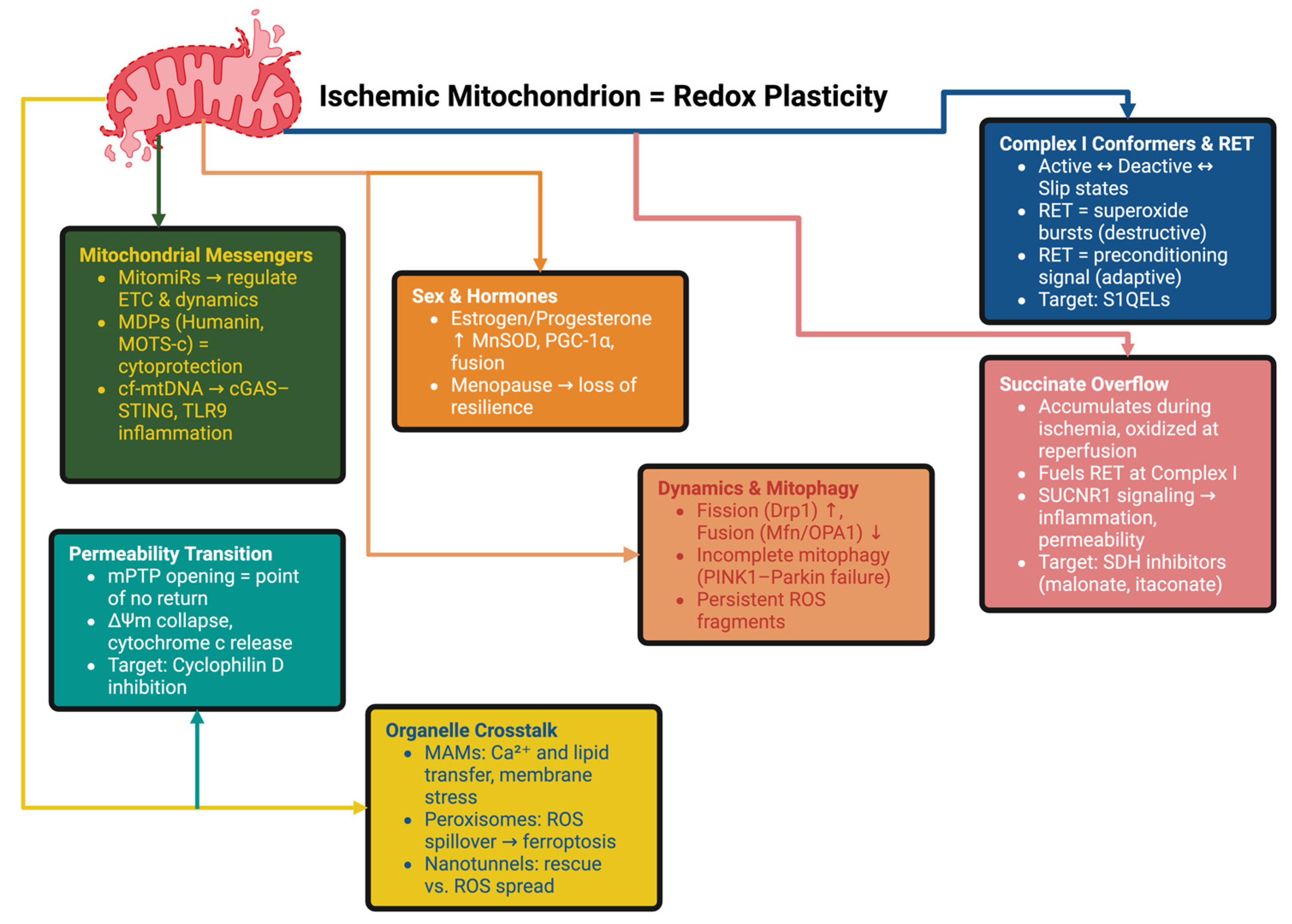 - RET, occurring at complex I, is the major mechanism generating ROS during the initial phase of reperfusion;