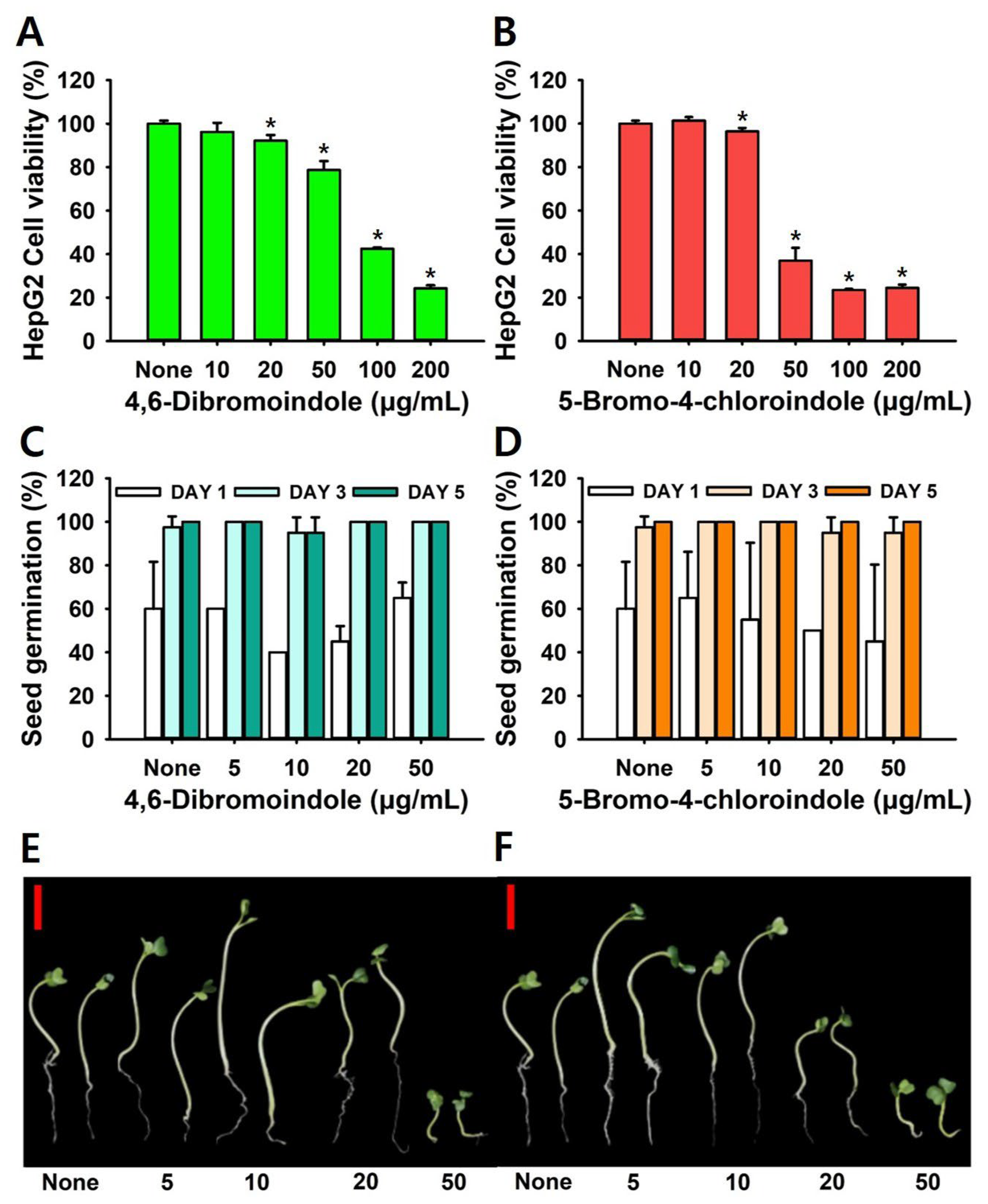 - Zhang, S.; Yang, Q.; Defoirdt, T. Halogenated indoles decrease the virulence of Vibrio campbellii in a gnotobiotic brine shrimp model. Microbiol. Spectr. 2022, 10, e0268922. [Google Scholar] [CrossRef]