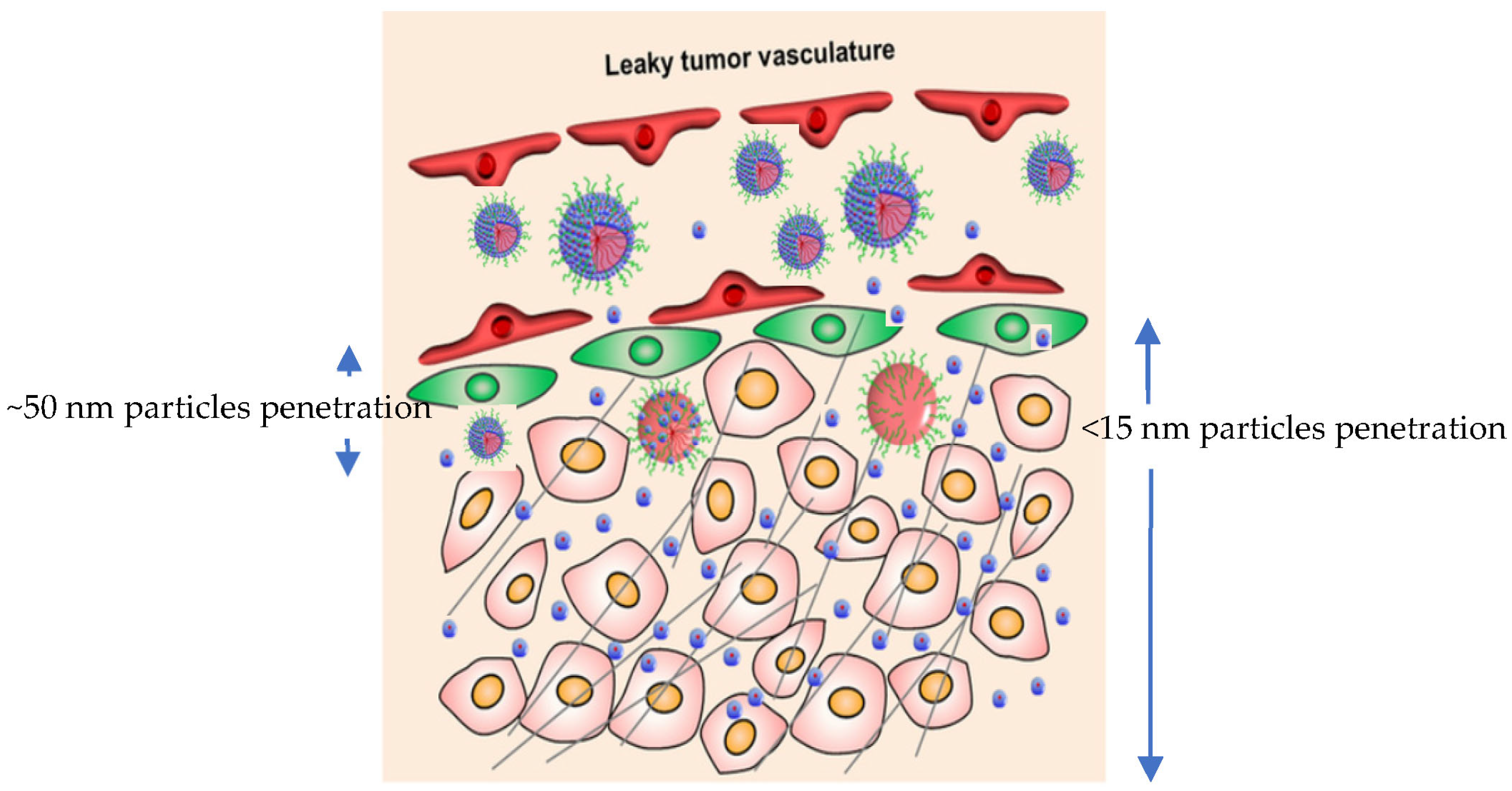 - Improved tumor penetration: Smaller nanoparticles navigate through the dense extracellular matrix more effectively than larger systems, achieving more uniform drug distribution within tumors.