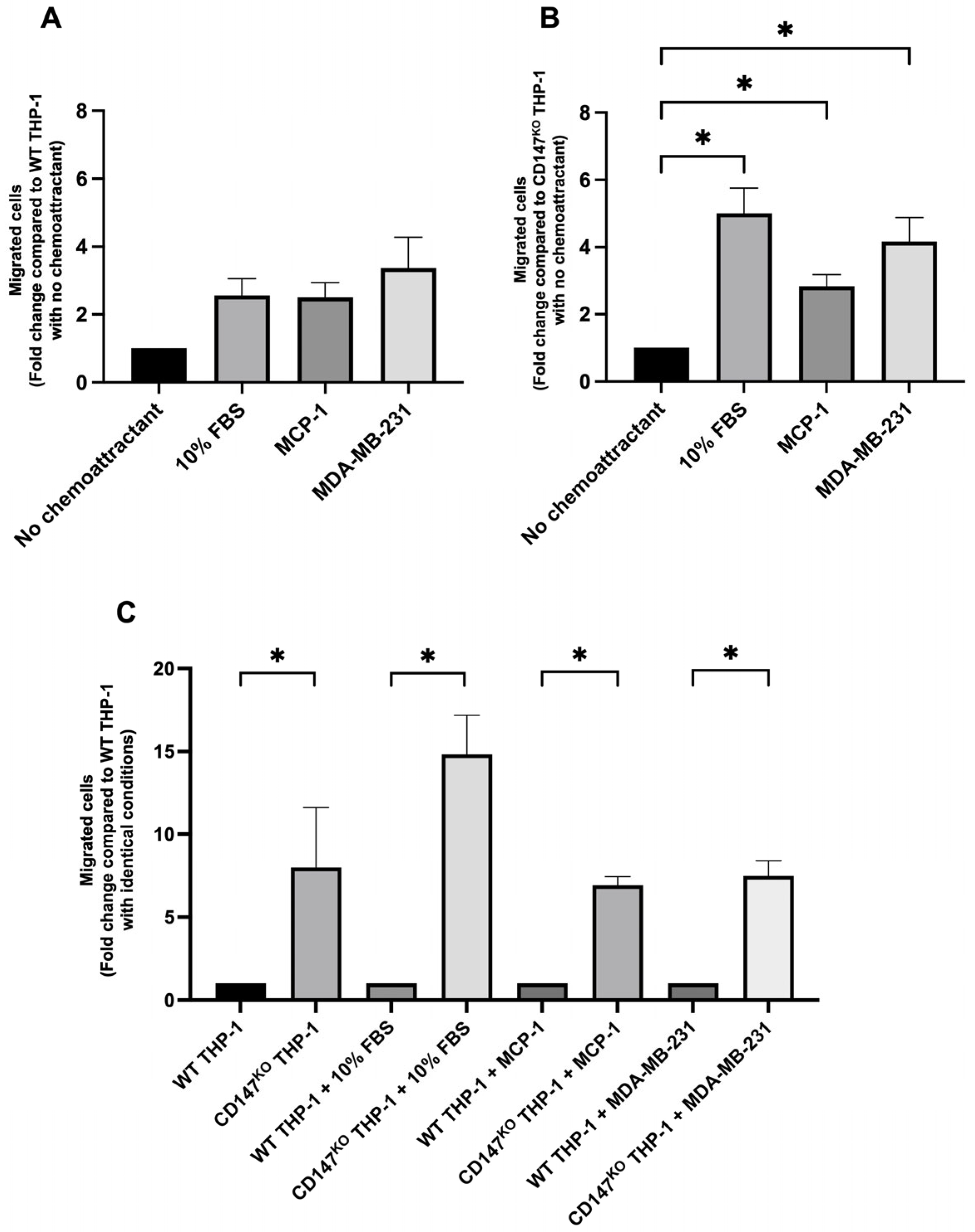 2.2. Chemotaxis Migration Assay of WT THP-1 and CD147KO THP-1 Monocytes Toward Chemoattractants Secreted by a Breast Cancer Cell Line, MDA-MB-231