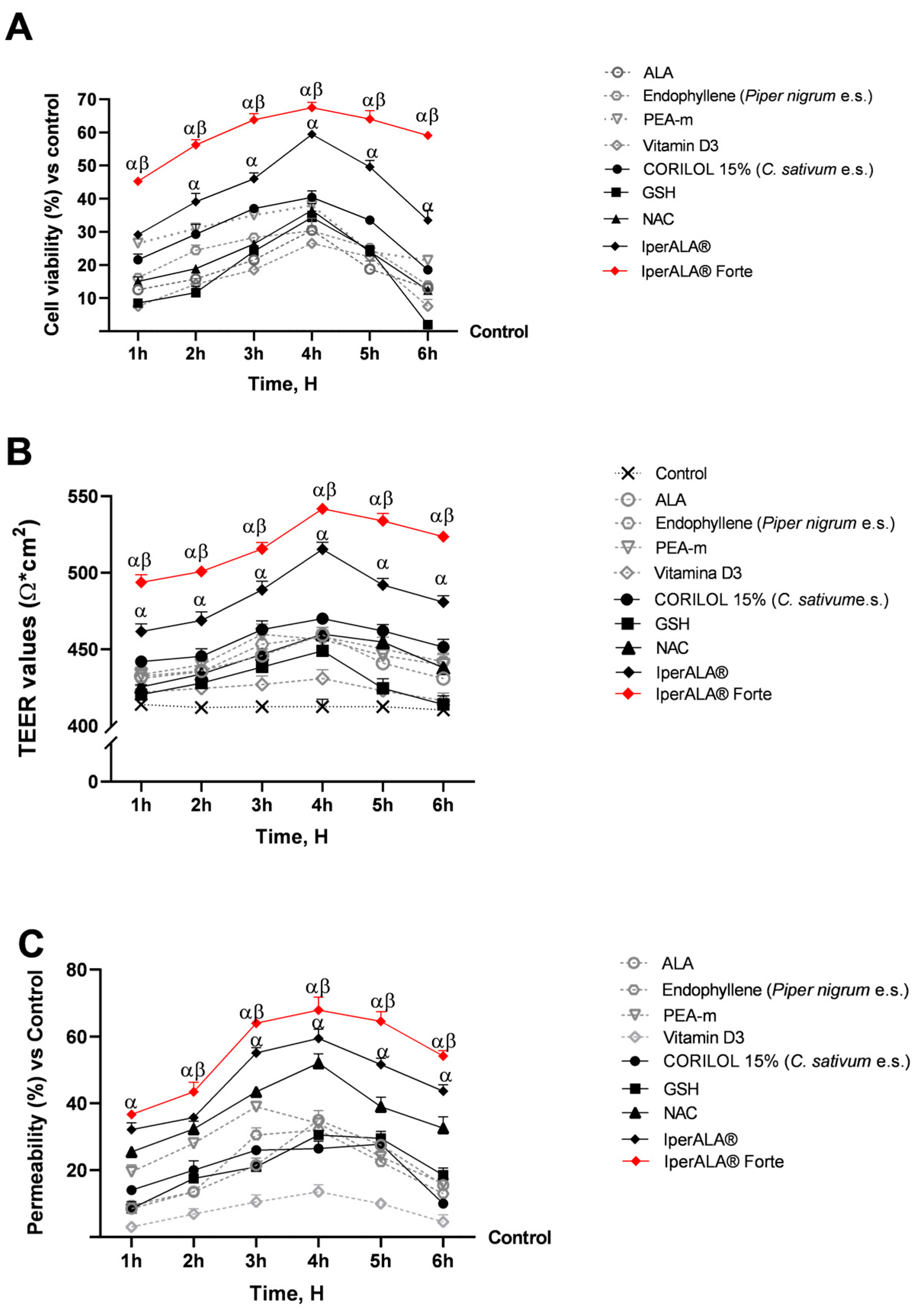 2.1. Evaluation of the Biological Effects of Formulations and Their Components at the Level of an In Vitro 3D Intestinal Barrier Model