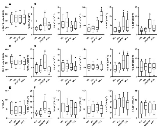2.1. Differential Effects of IgG from ACs, HAM/TSP, and ATLL Patients on Cytokine Production by Healthy CD4+, CD8+, and γδ T Cells