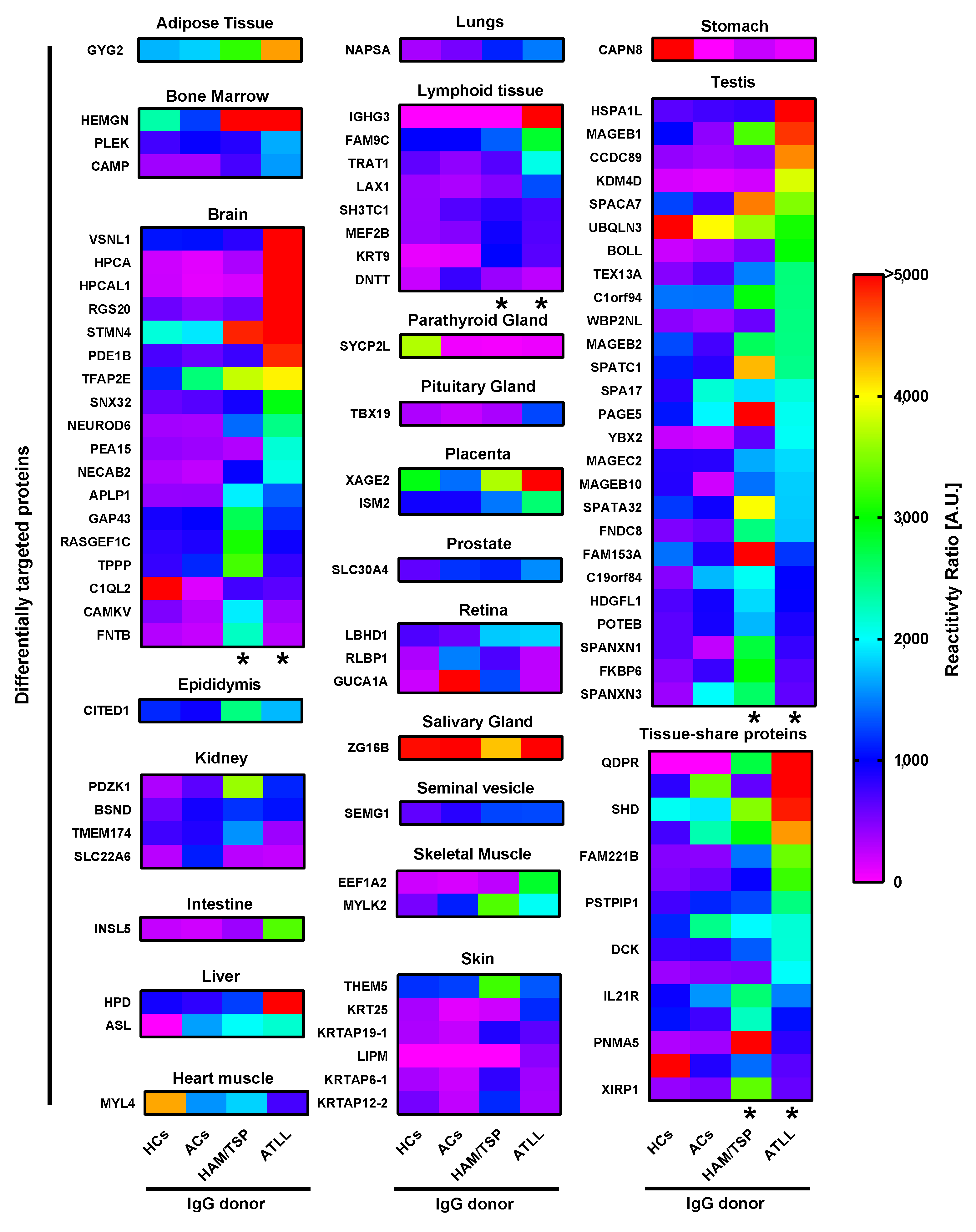 2.4. HTLV-1-Infected Patients Produce IgG Targeting Various Human Tissues