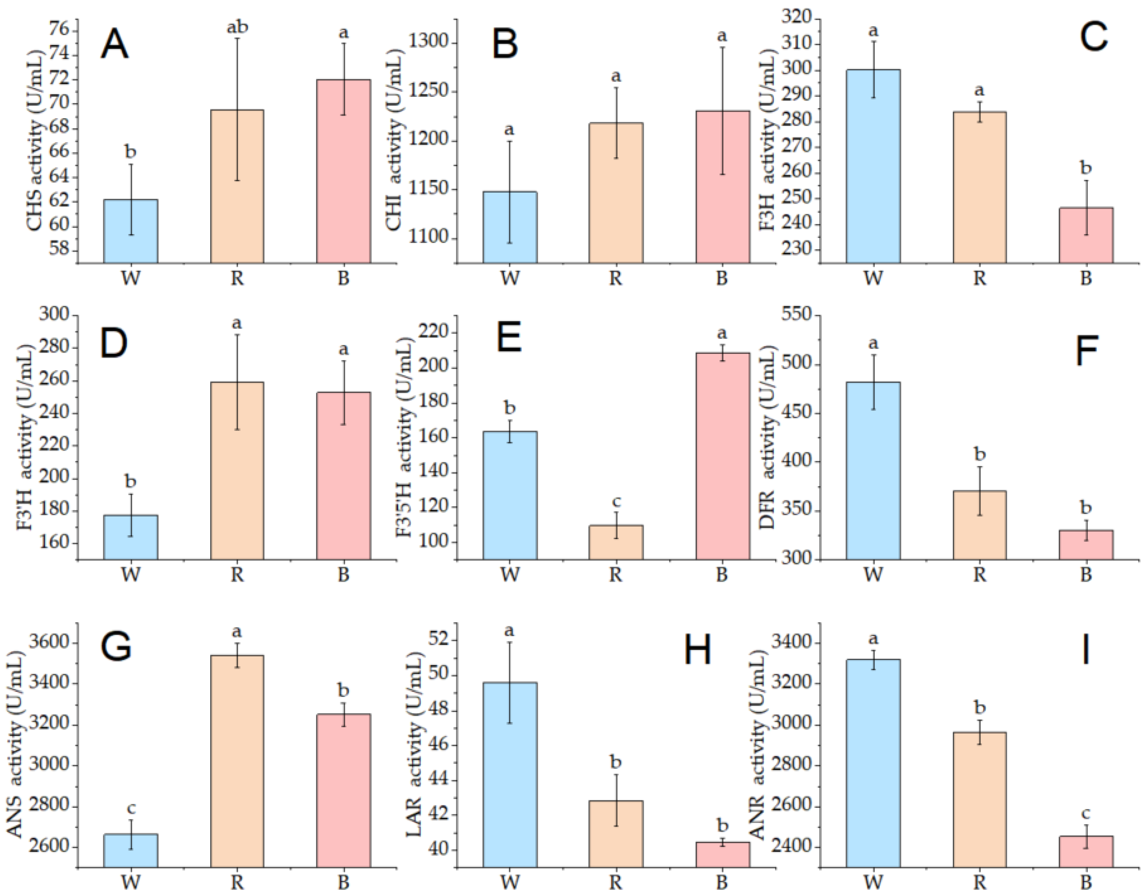 2.4. Analysis of Critical Enzymatic Activities in the Anthocyanin Synthetic Pathway