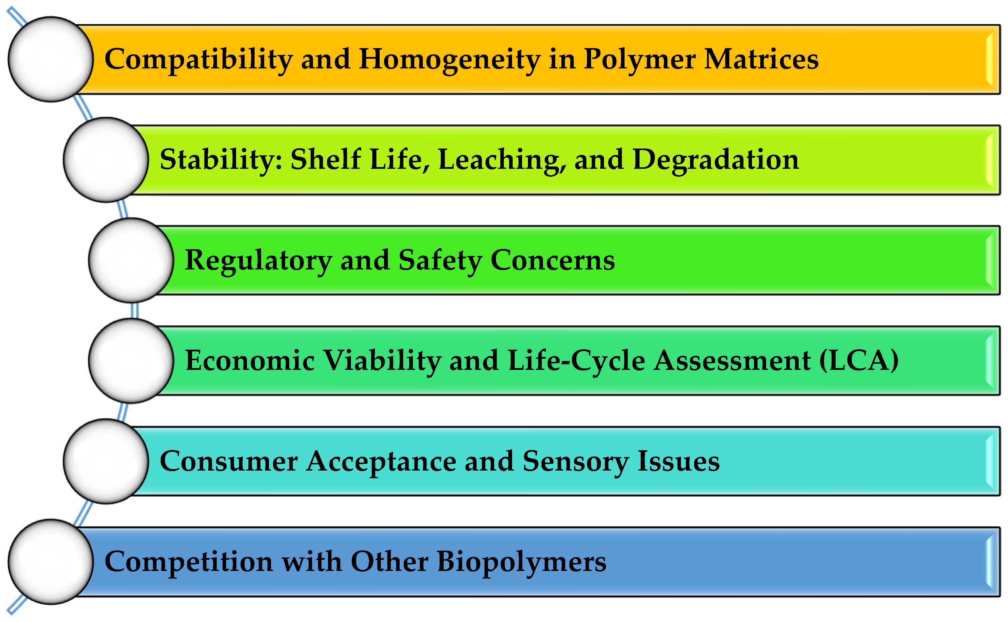 Unlike synthetic additives, mushroom-based bioactives can simultaneously provide multiple benefits within a single formulation [56]. Unlike synthetic additives that typically target single functions, mushroom extracts can provide antioxidant, antimicrobial, and barrier properties within the same formulation [57]. This multifunctionality simplifies design and minimizes additive load, aligning with clean-label trends and consumer preferences for natural food packaging [58].