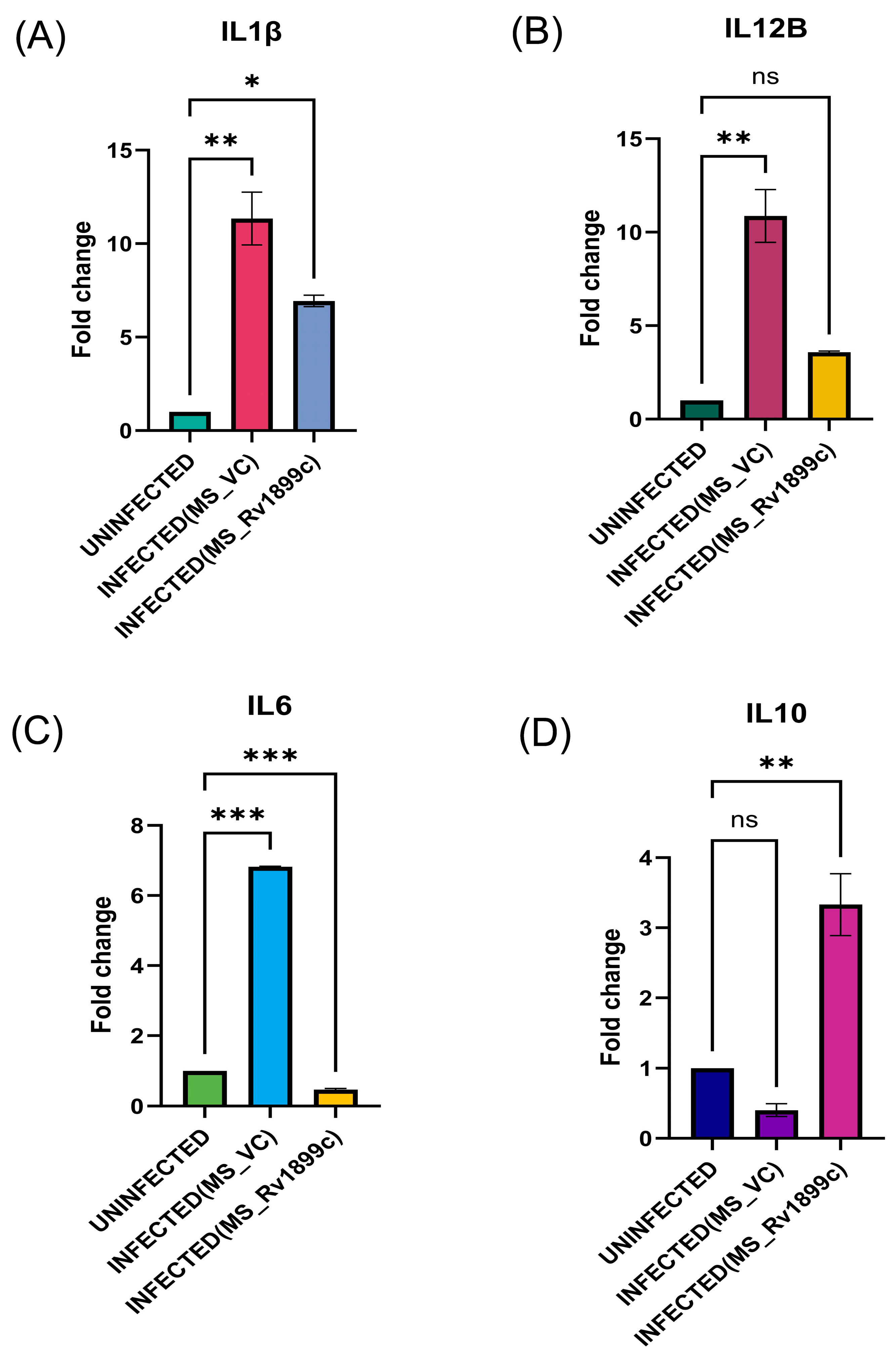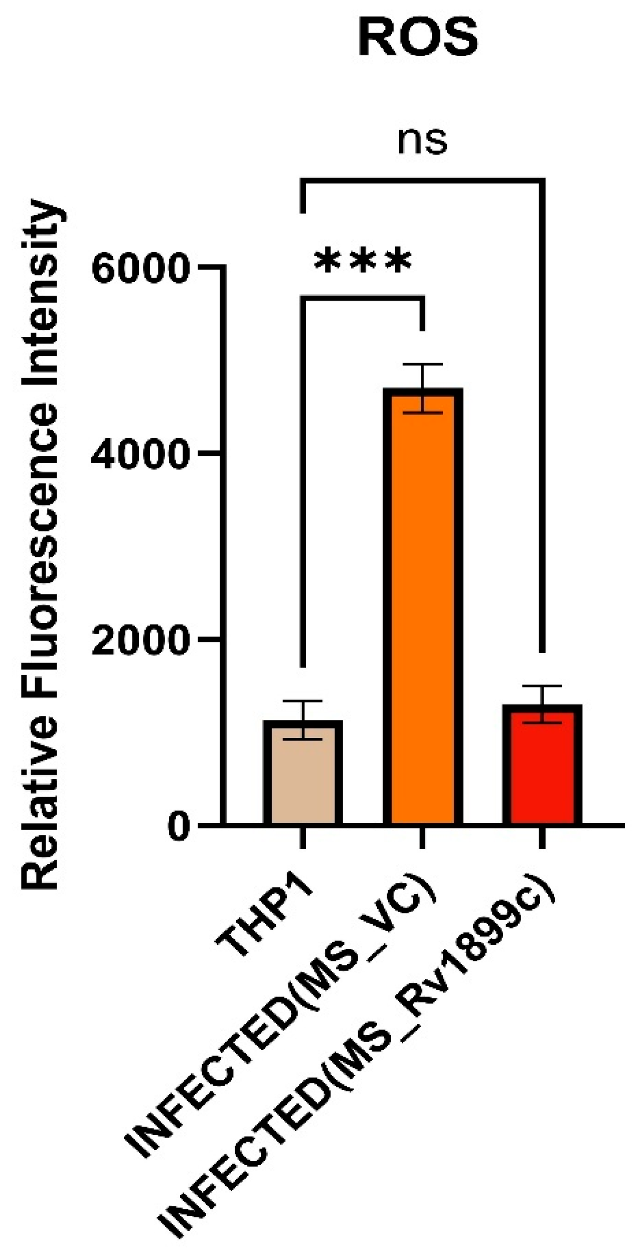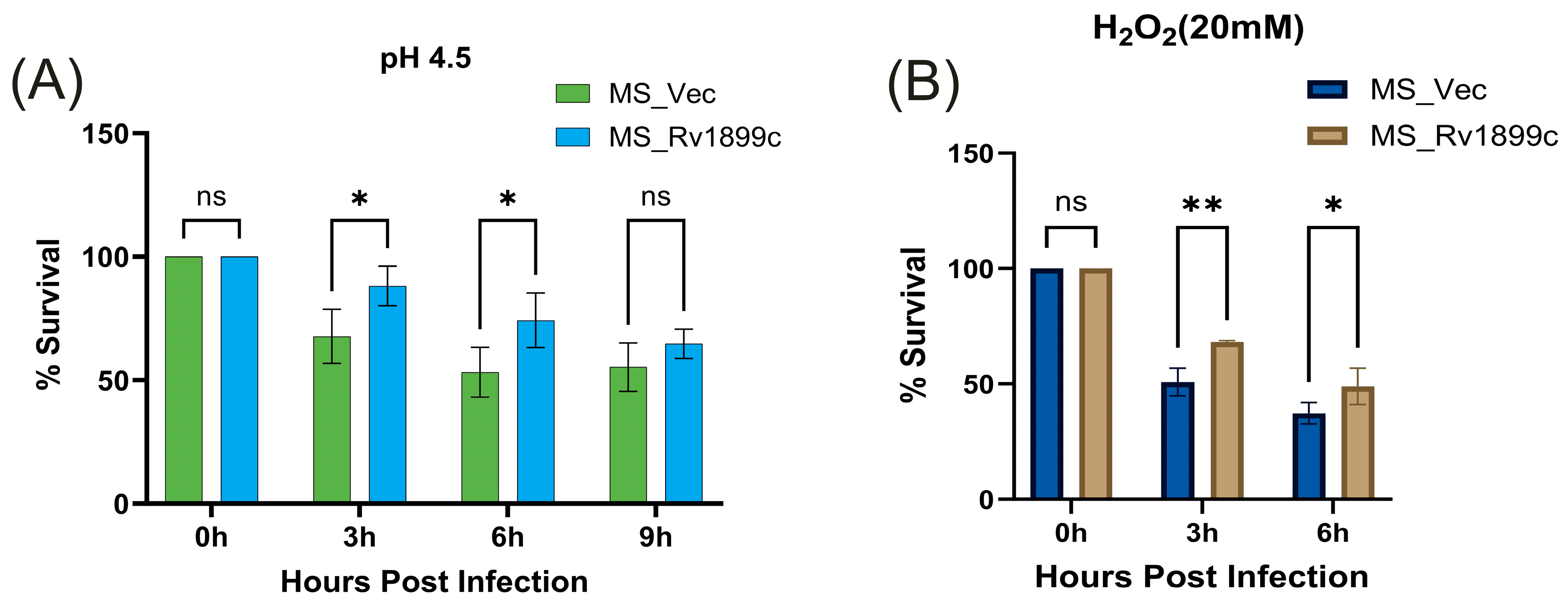 2.3.2. ROS Measurement in Macrophages Infected with M. smegmatis Vector Control and Rv1899c-Overexpressing M. smegmatis