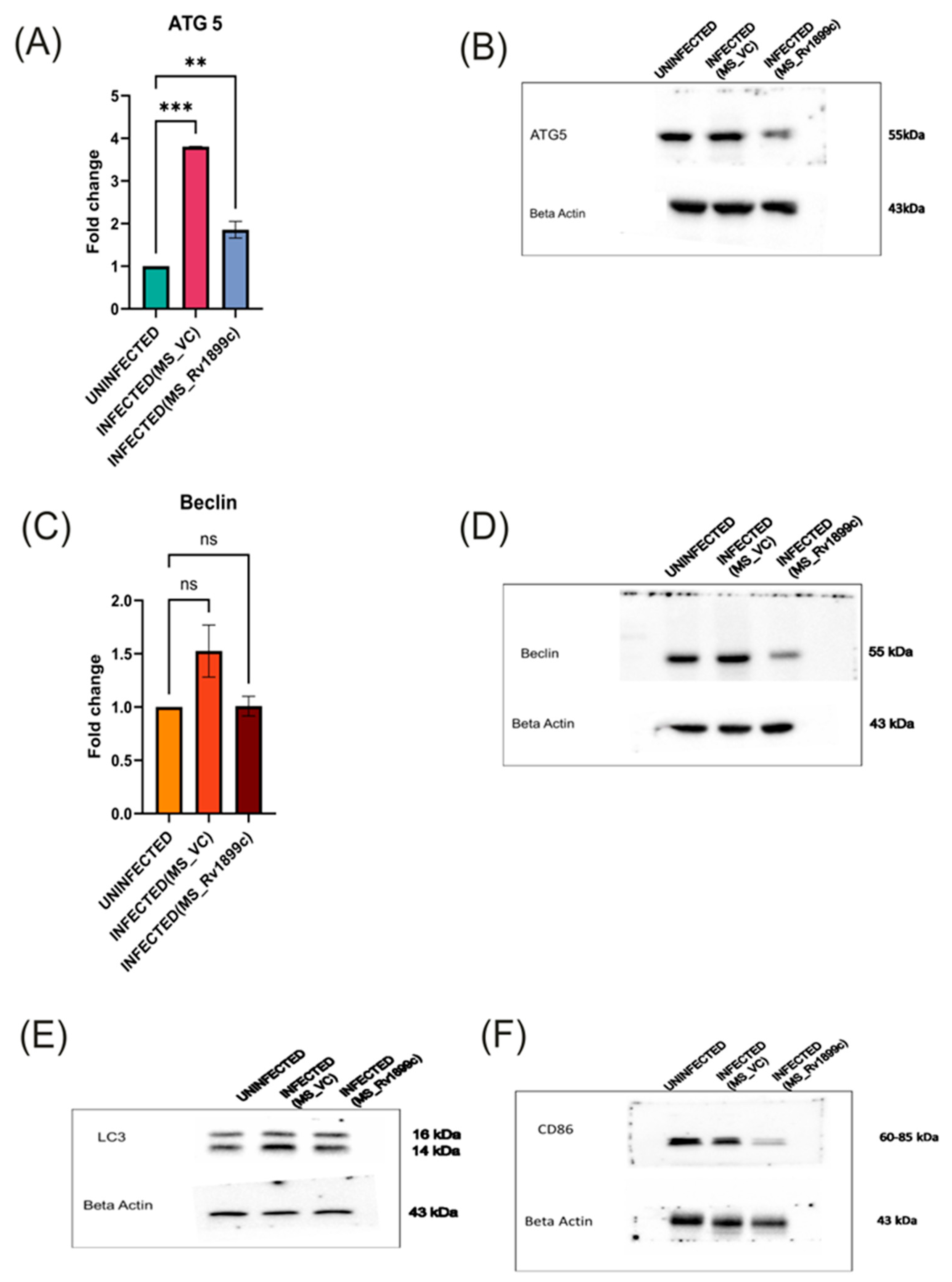 2.4. Rv1899c Suppresses the Secretion of Pro-Inflammatory Cytokines, Autophagy Gene ATG5, Baclin, LC3 and Reduces the Populations of M1 Macrophages upon Infection