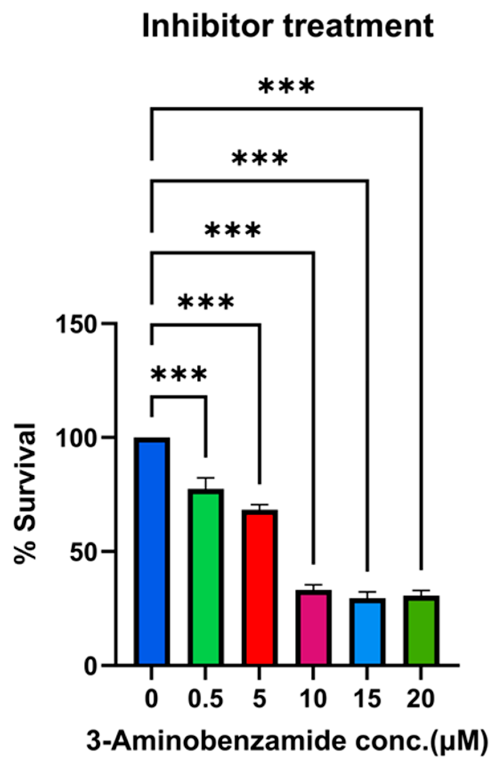 - Rankin, P.W.; Jacobson, E.L.; Benjamin, R.C.; Moss, J.; Jacobson, M.K. Quantitative studies of inhibitors of ADP-ribosylation in vitro and in vivo. J. Biol. Chem. 1989, 264, 4312–4317. [Google Scholar] [CrossRef]