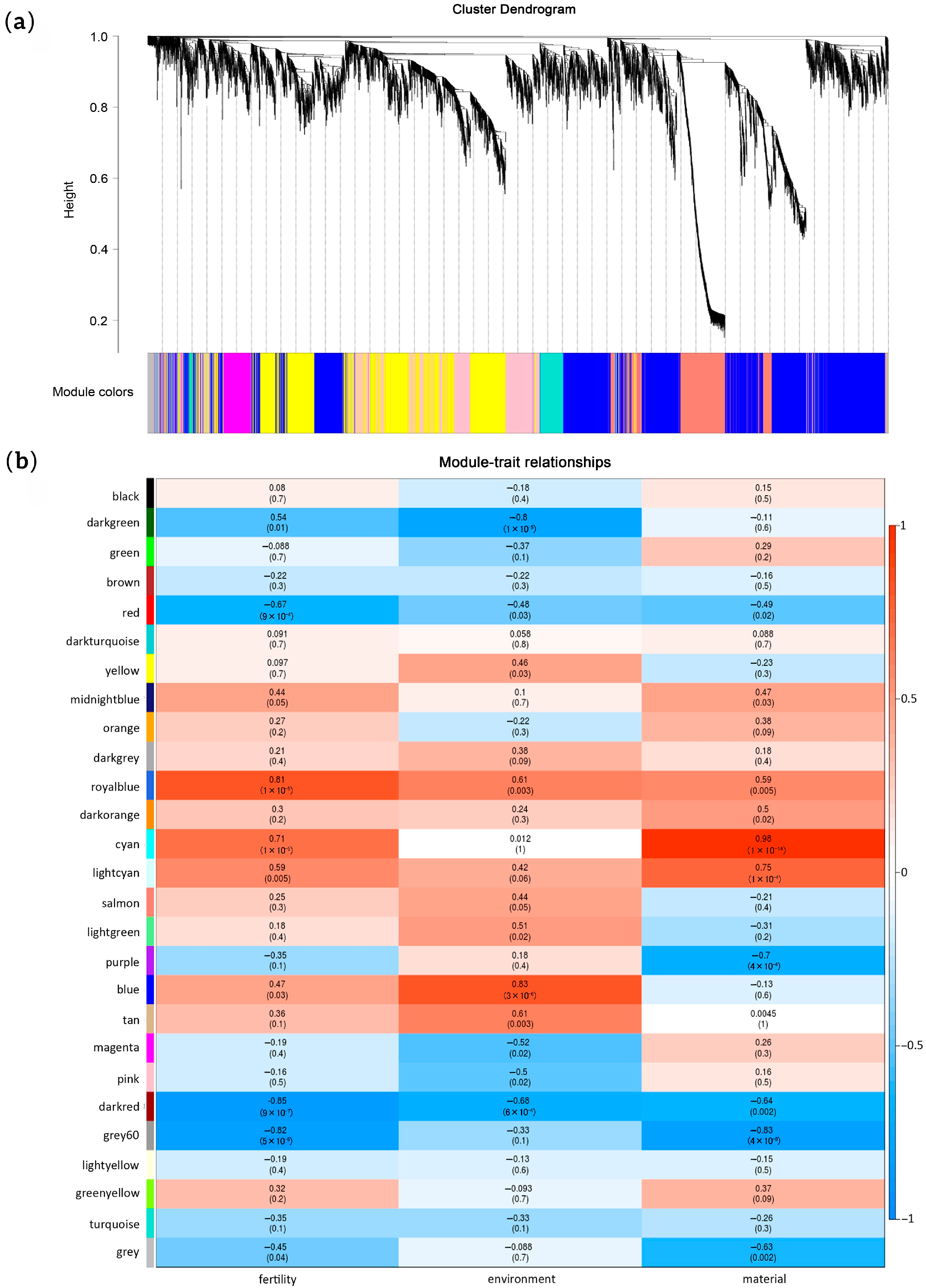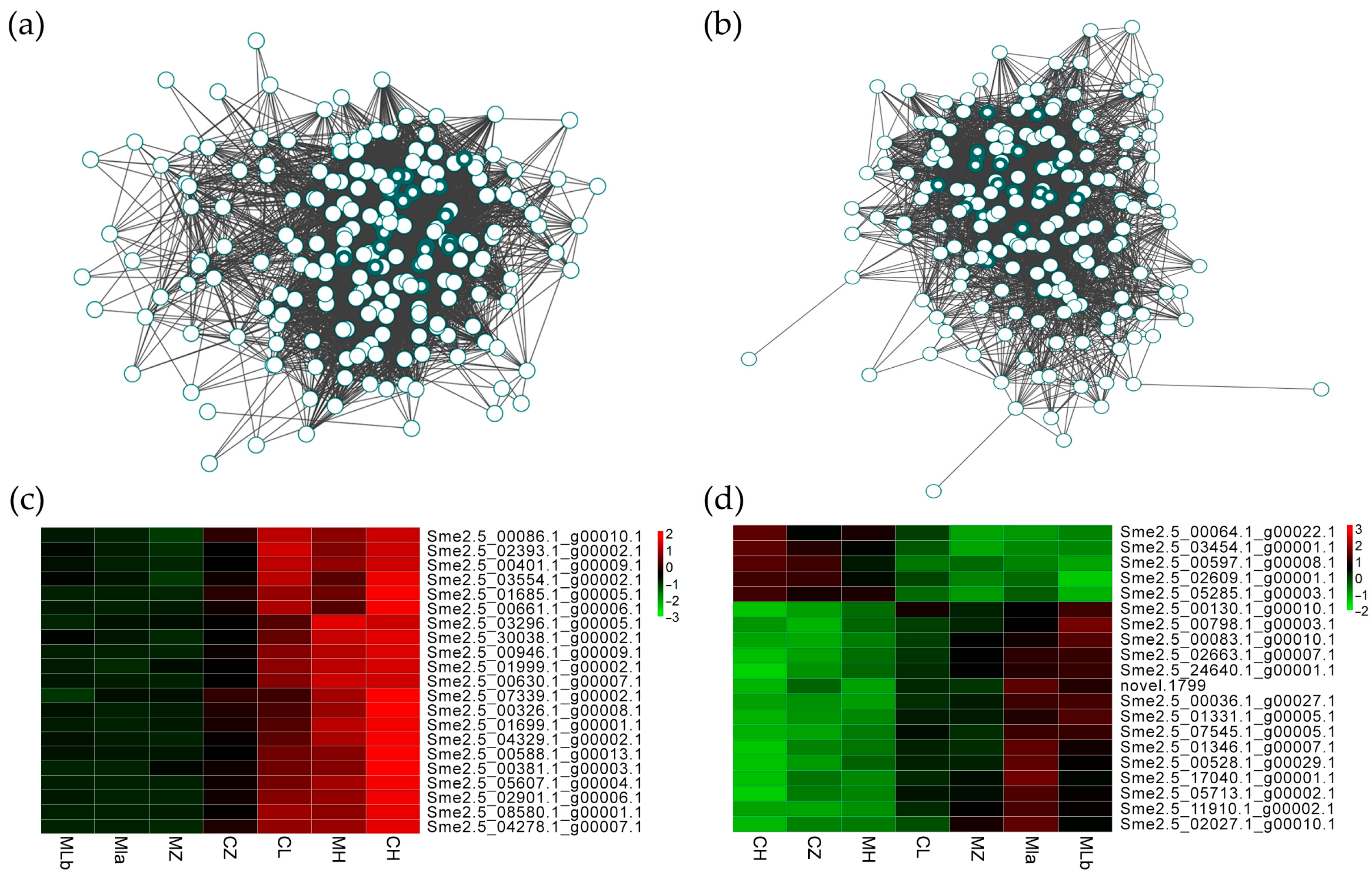 - Langfelder, P.; Horvath, S. WGCNA: An R package for weighted correlation network analysis. BMC Bioinform. 2008, 9, 559. [Google Scholar] [CrossRef] [PubMed]