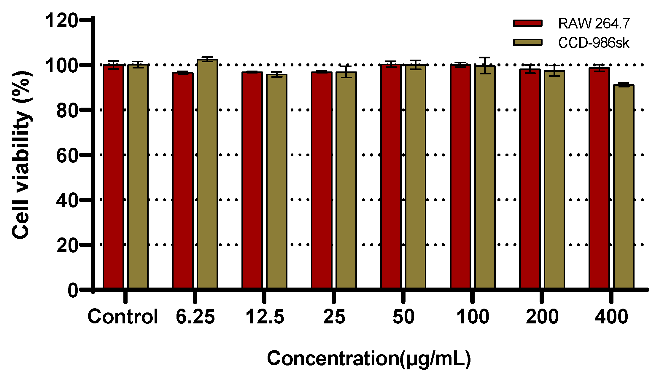 4.2.7. Cell Viability Assay in RAW 264.7 and CCD-986sk Cells