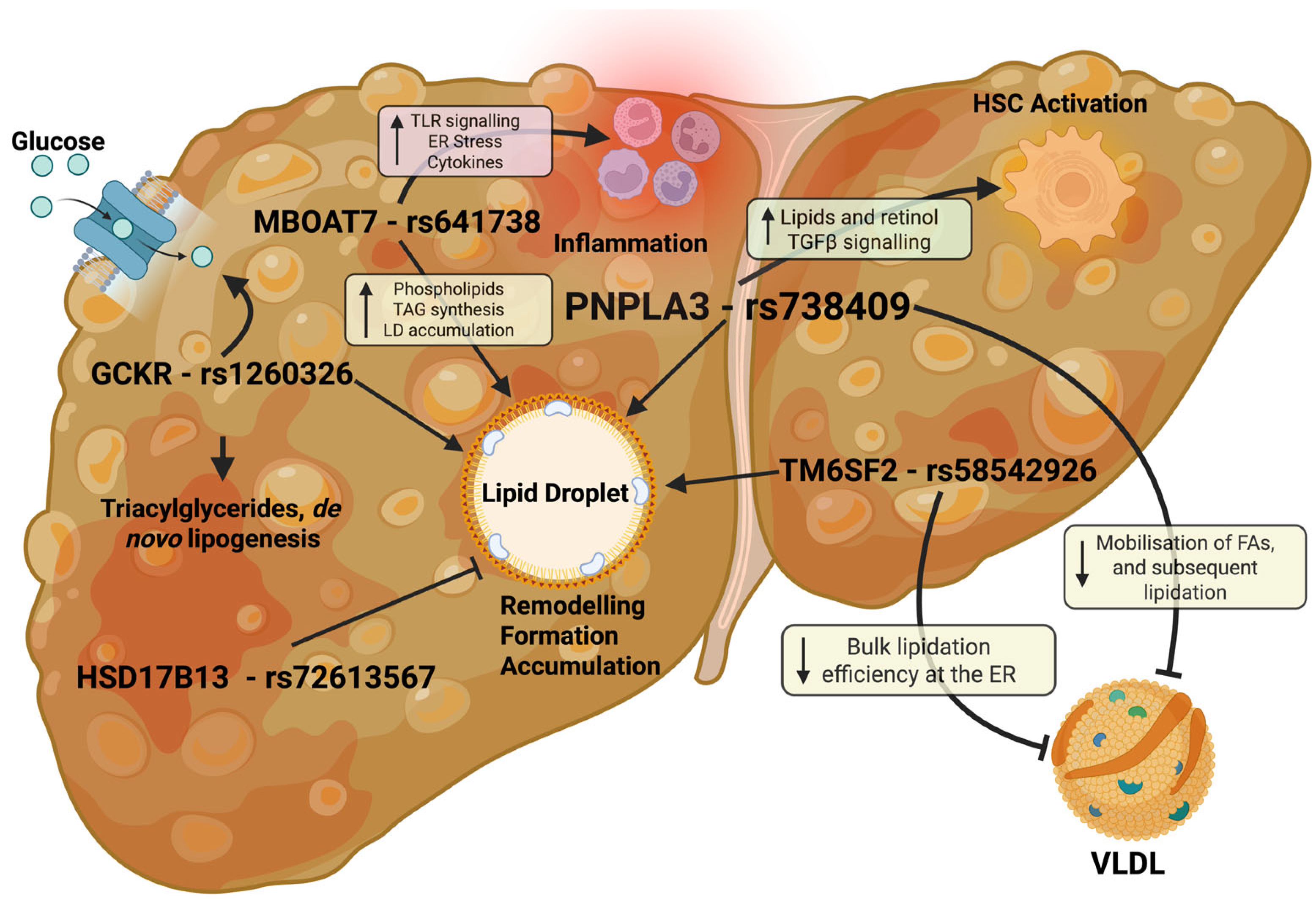 - Liu, Y.-L.; Reeves, H.L.; Burt, A.D.; Tiniakos, D.; McPherson, S.; Leathart, J.B.S.; Allison, M.E.D.; Alexander, G.J.; Piguet, A.-C.; Anty, R.; et al. TM6SF2 rs58542926 influences hepatic fibrosis progression in patients with non-alcoholic fatty liver disease. Nat. Commun. 2014, 5, 4309. [Google Scholar] [CrossRef]