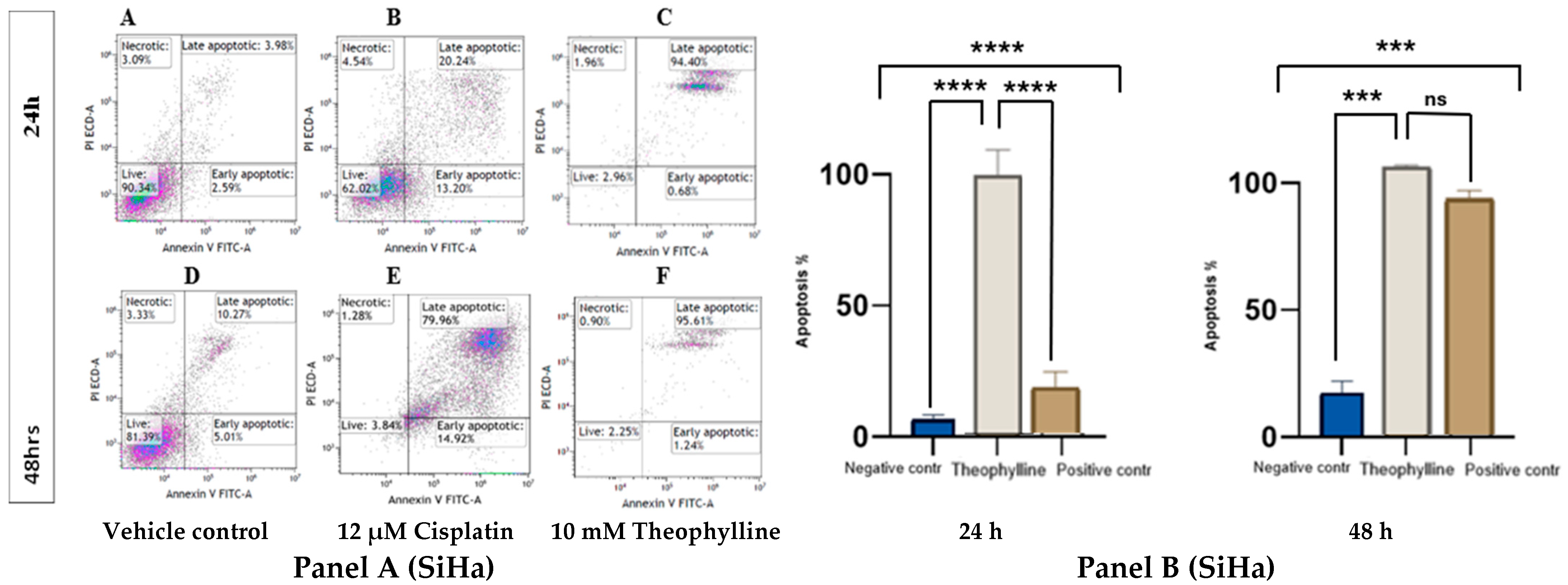 2.2. Theophylline Induces Apoptosis in CCa Cell Line SiHa and C33A